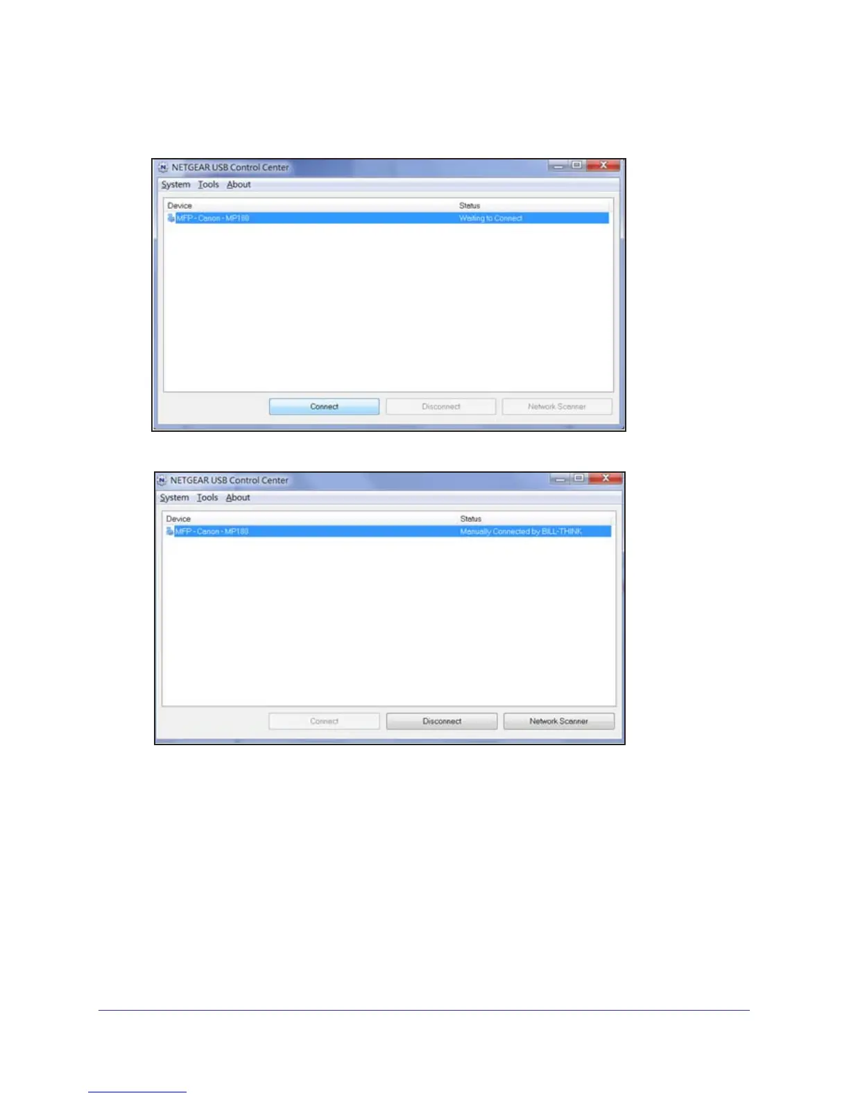 6. The first time you access the utility, you are asked to select the printer and click the Connect