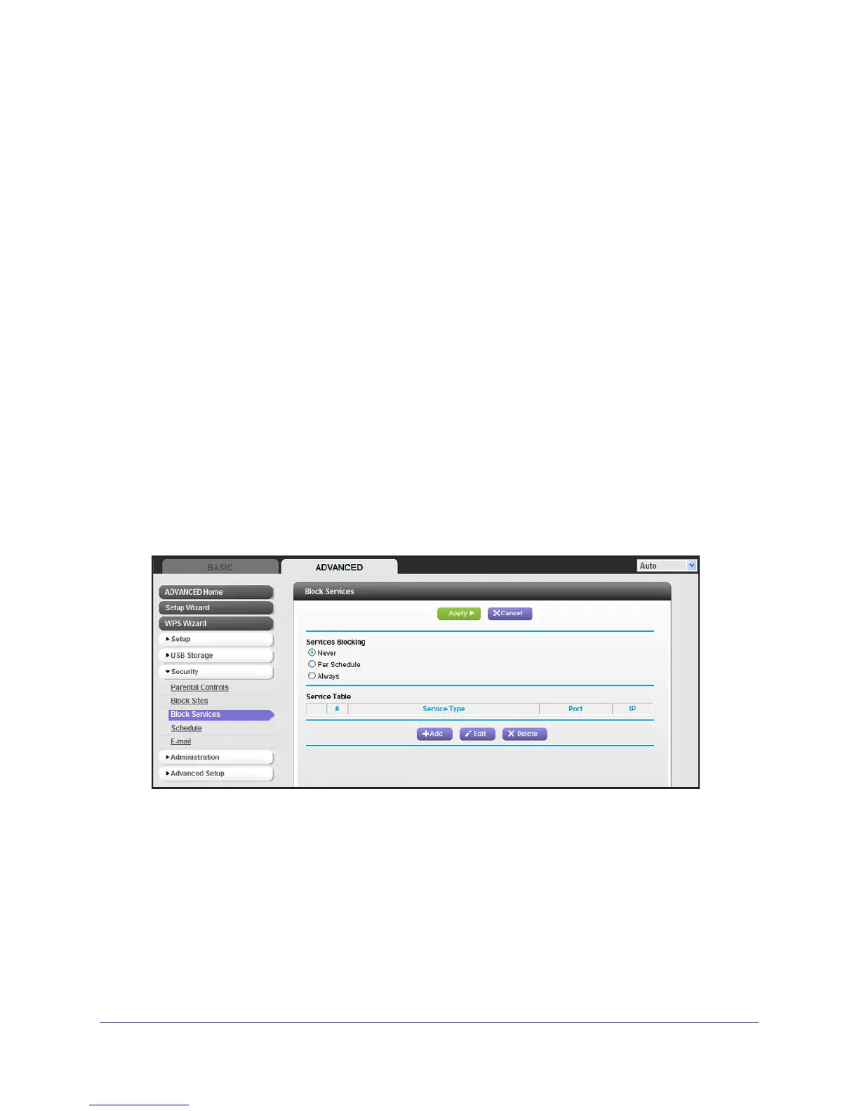 2. Select either Per Schedule or Always to enable service blocking, and click Apply. If you