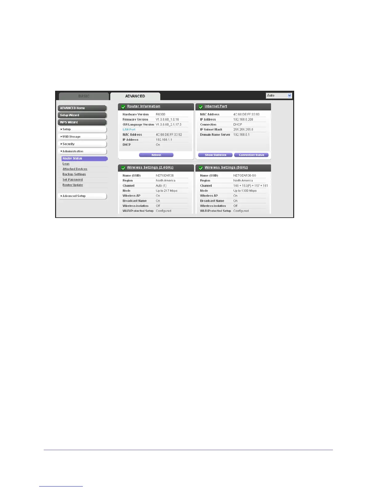 To view router status and usage information, select Advanced Home or select