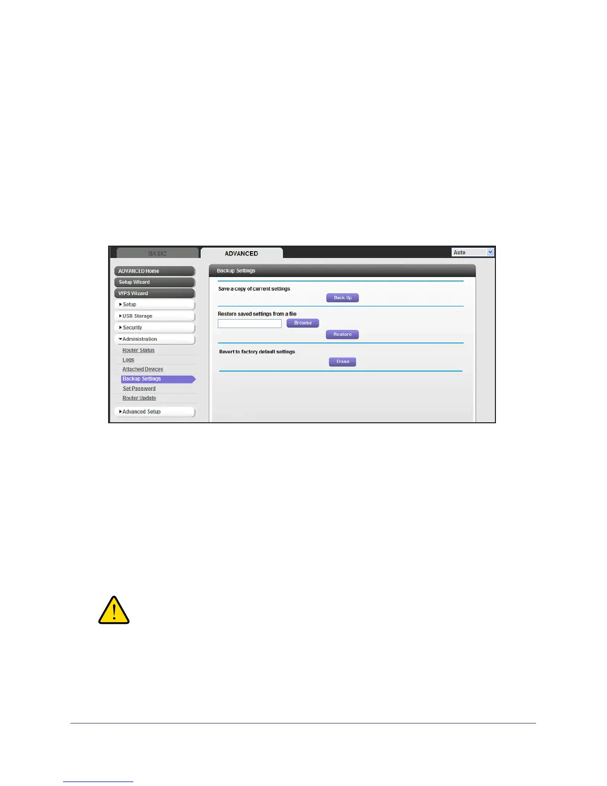 configuration file. You can back up (save) this file to your computer, restore it, or reset it to the