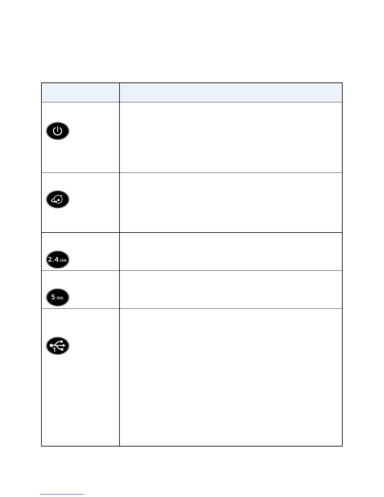 • Solid white. The 2.4 GHz WiFi radio is operating.