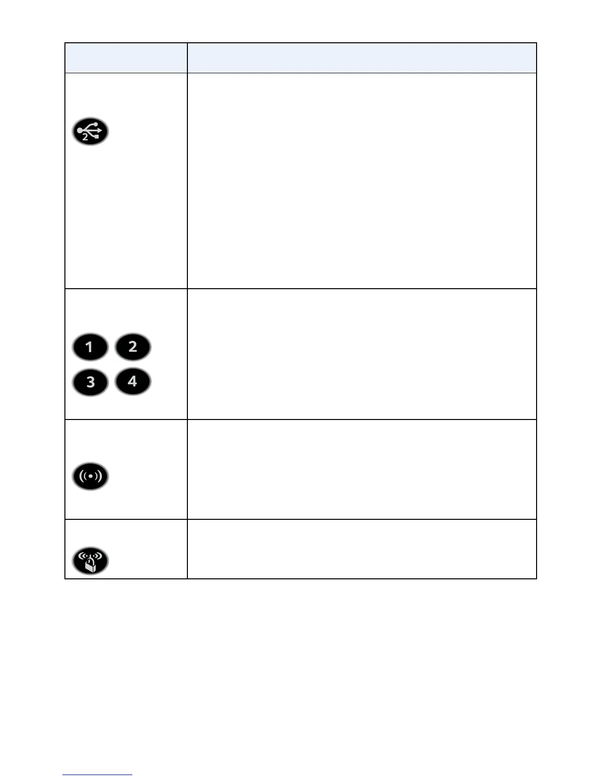 • Solid white. A USB printer is connected to the USB