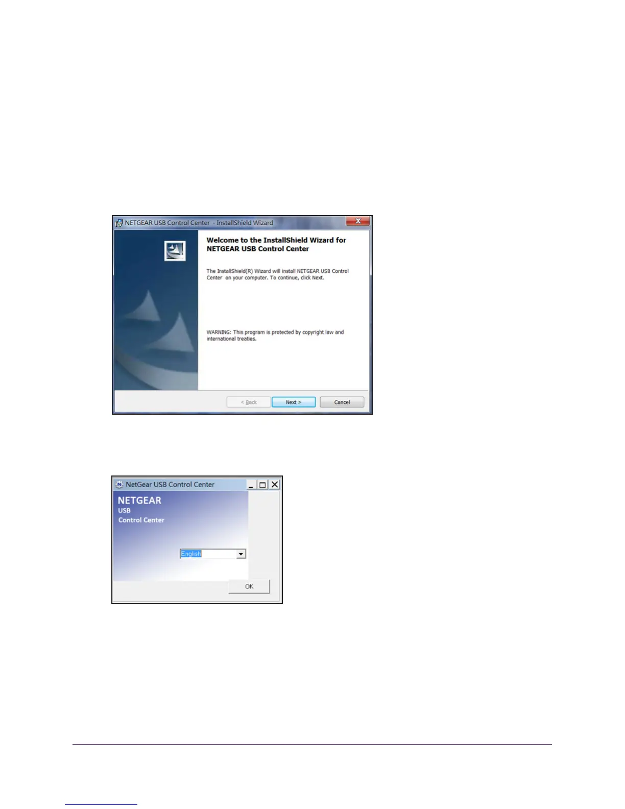 2. Follow the wizard instructions to install NETGEAR USB Control Center.