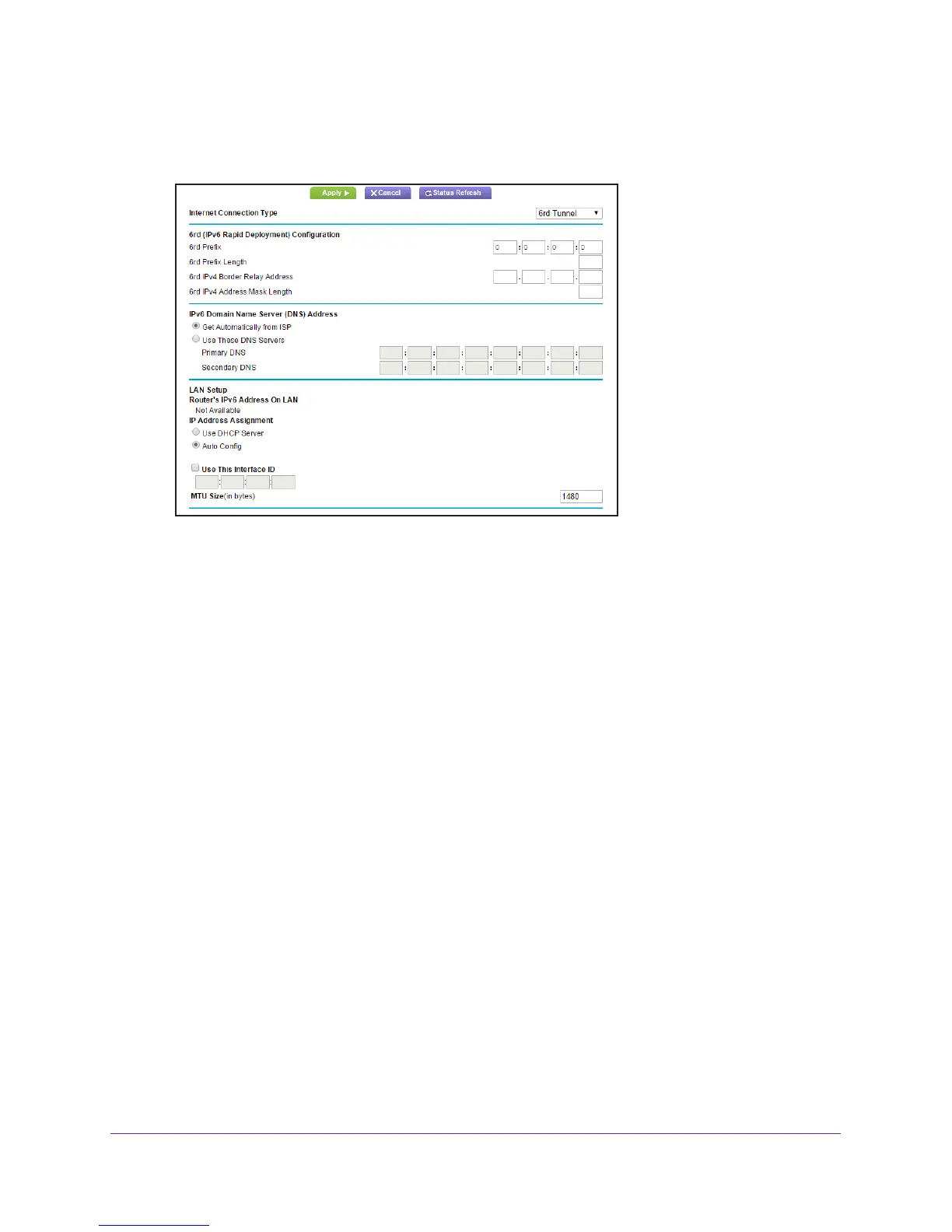 the IPv4 network returns 6rd parameters to the router, the page adjusts to display the