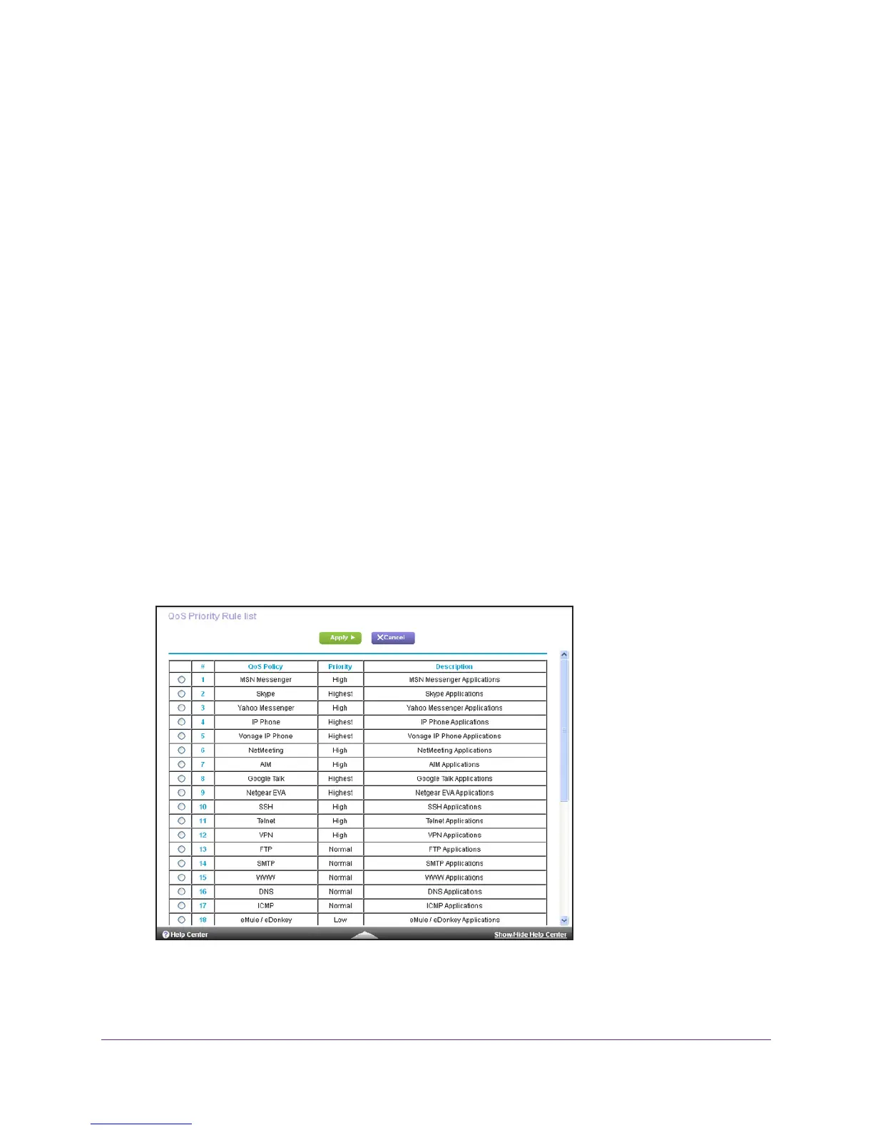 QoS Policy table in the QoS Setup page. For convenience, the QoS Policy table lists many