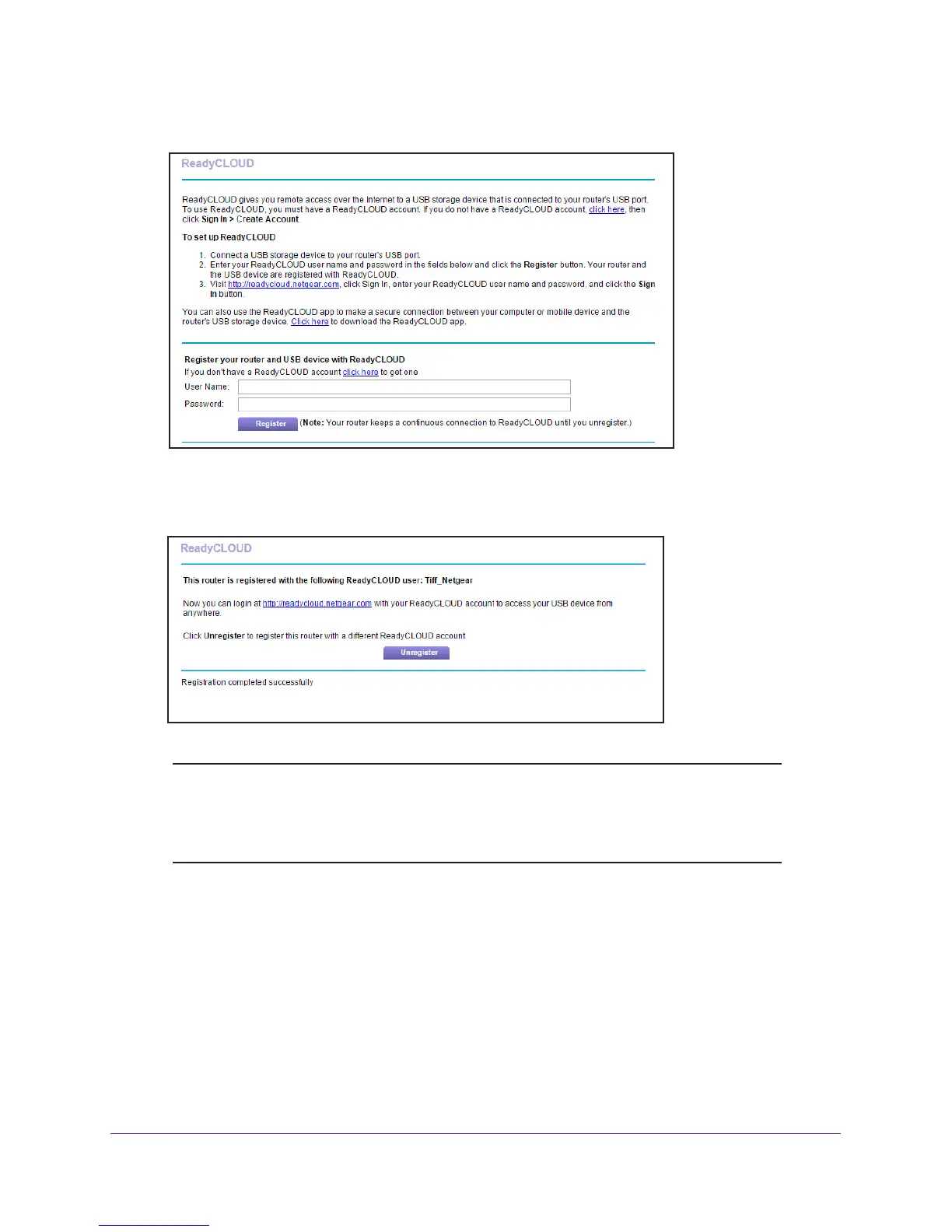 The ReadyCLOUD page displays the router that you registered and the contents of the