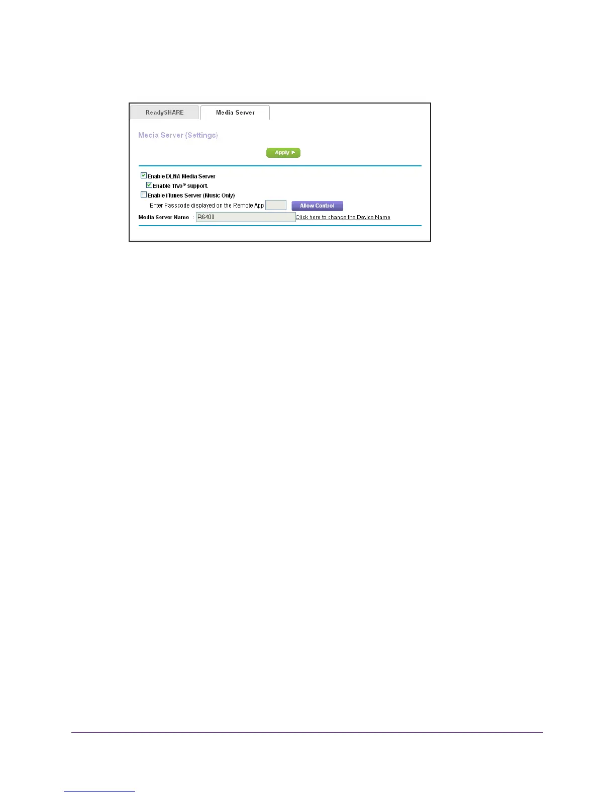 d. Select ADVANCED > USB Functions > ReadySHARE Storage > Media Server.