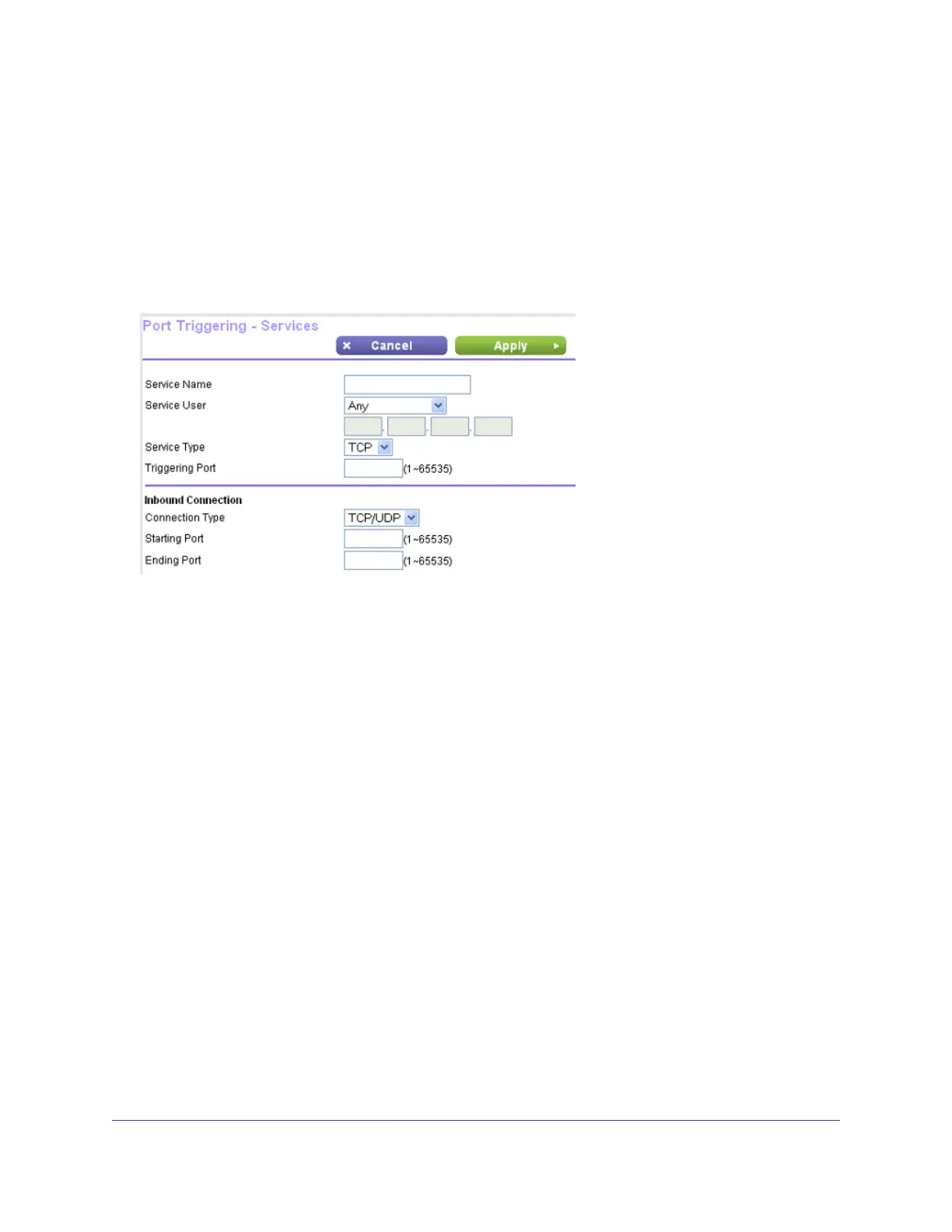 10. In the Triggering Port field, enter the number of the outbound traffic port that will open the inbound