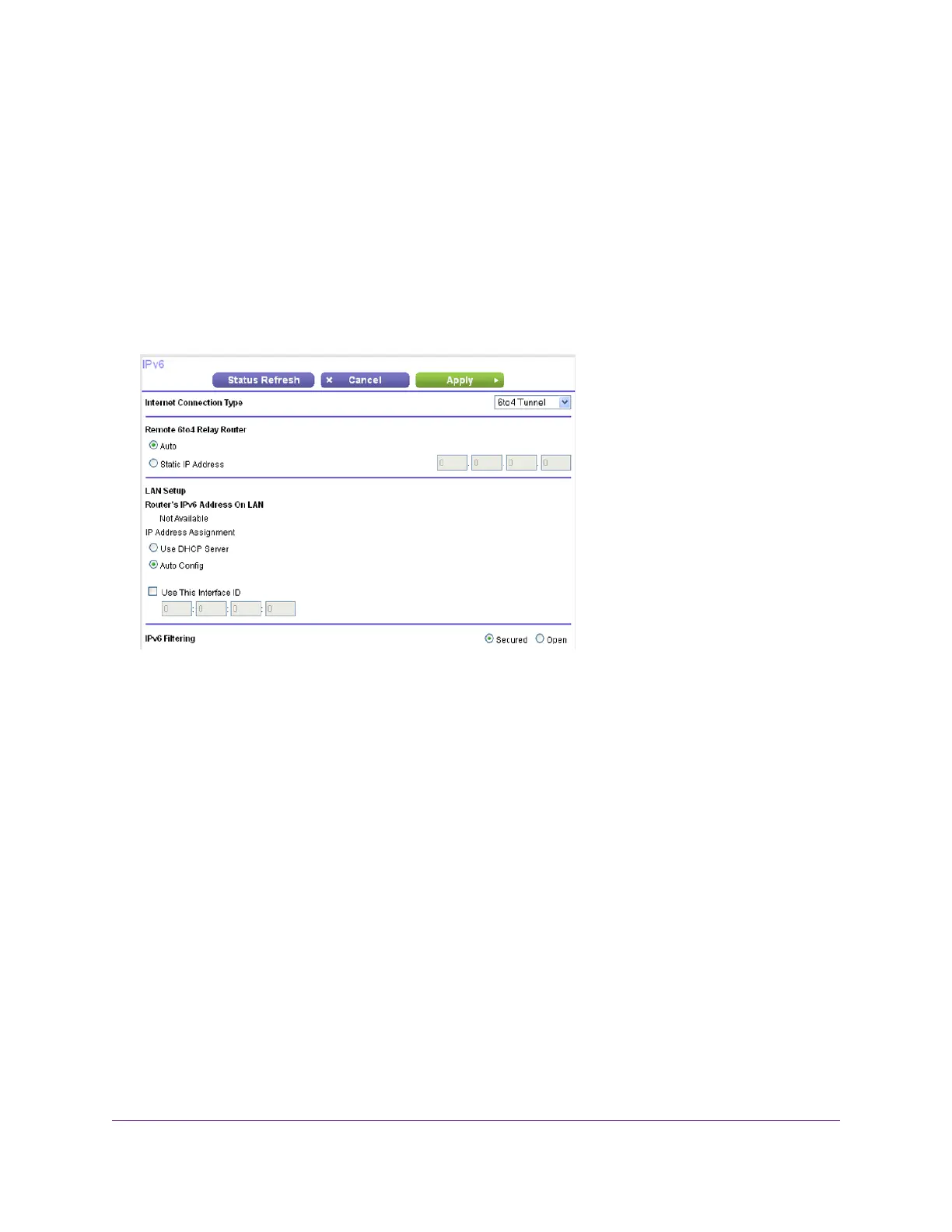 The router automatically detects the information in the Router’s IPv6 Address on LAN field. This field