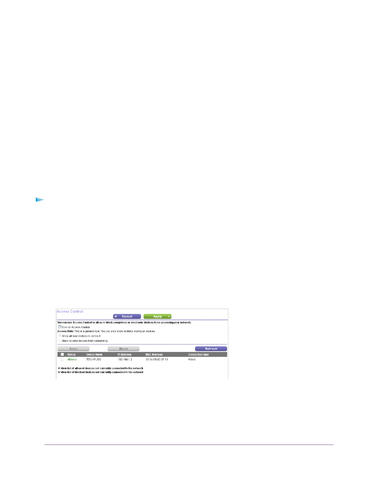 buttons. When this check box is cleared, all devices are allowed to connect, even if a device is in the