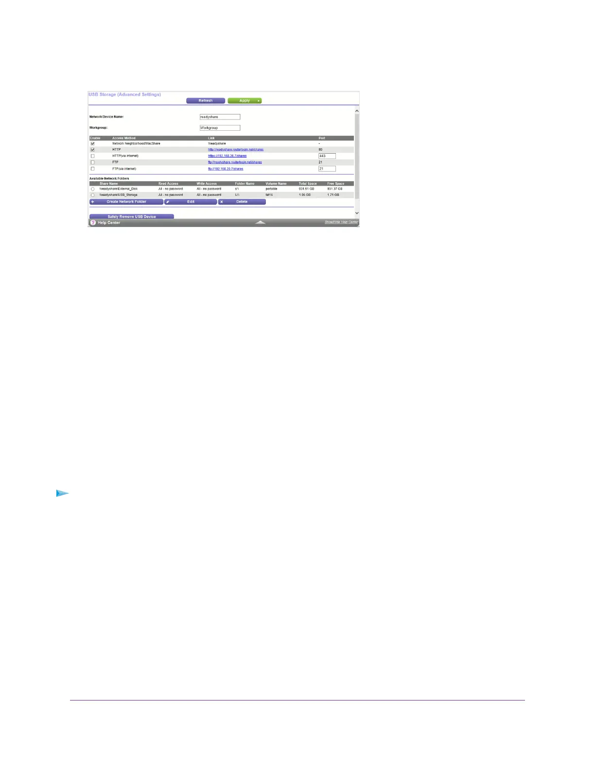 • Share Name. If only one USB device is connected, the default share name is USB_Storage.The