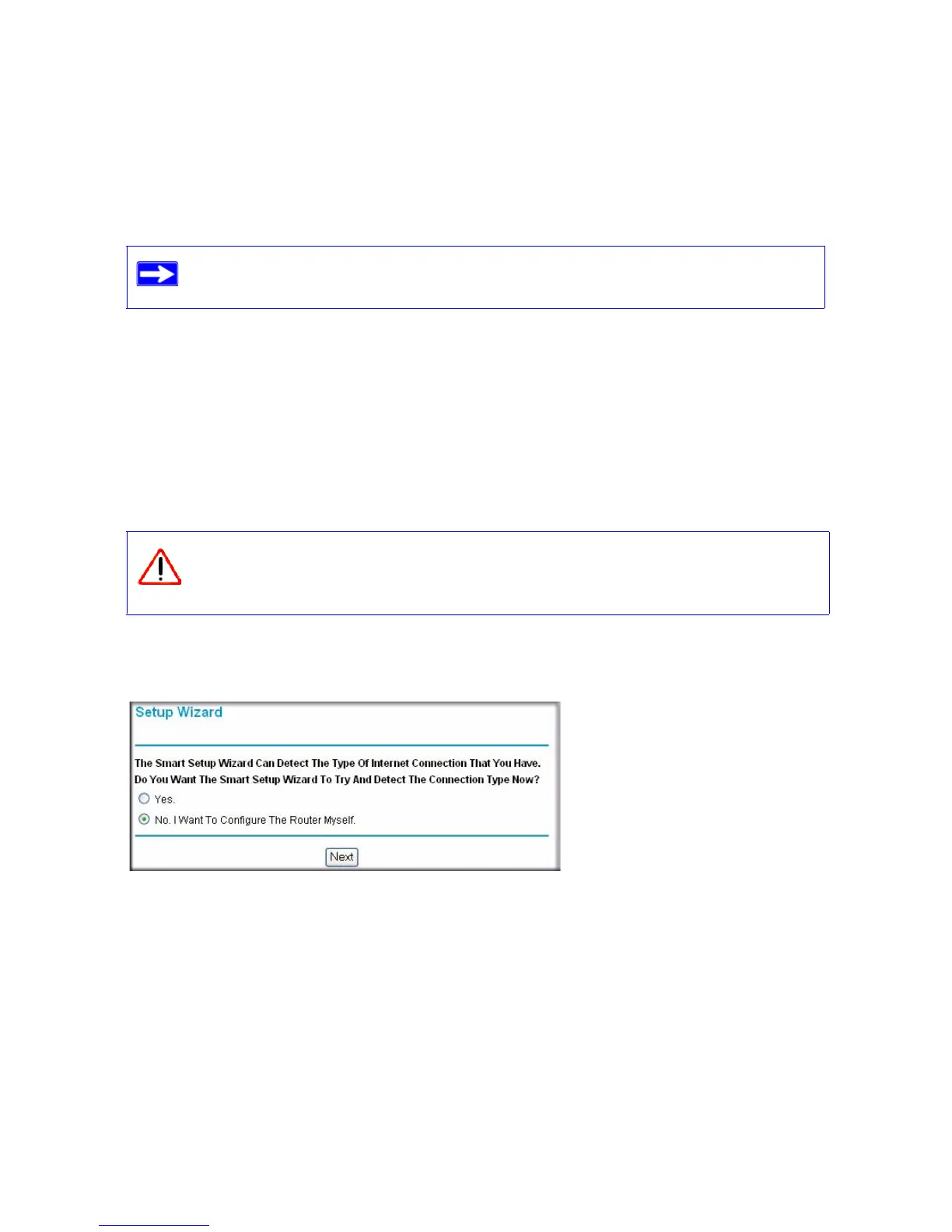 • Select Yes to allow the Setup Wizard to detect your Internet connection. When prompted,