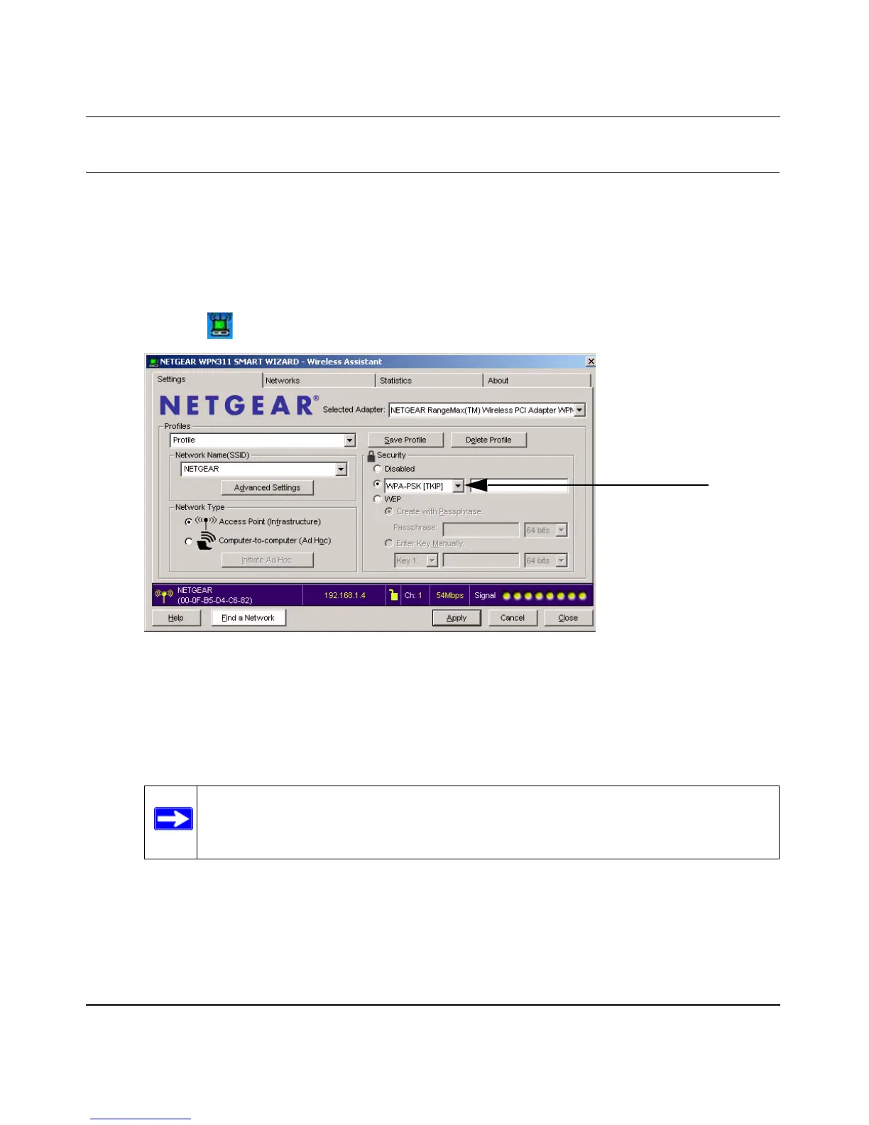 c. In the Security section, select WPA-PSK [TKIP] and enter the passphrase.