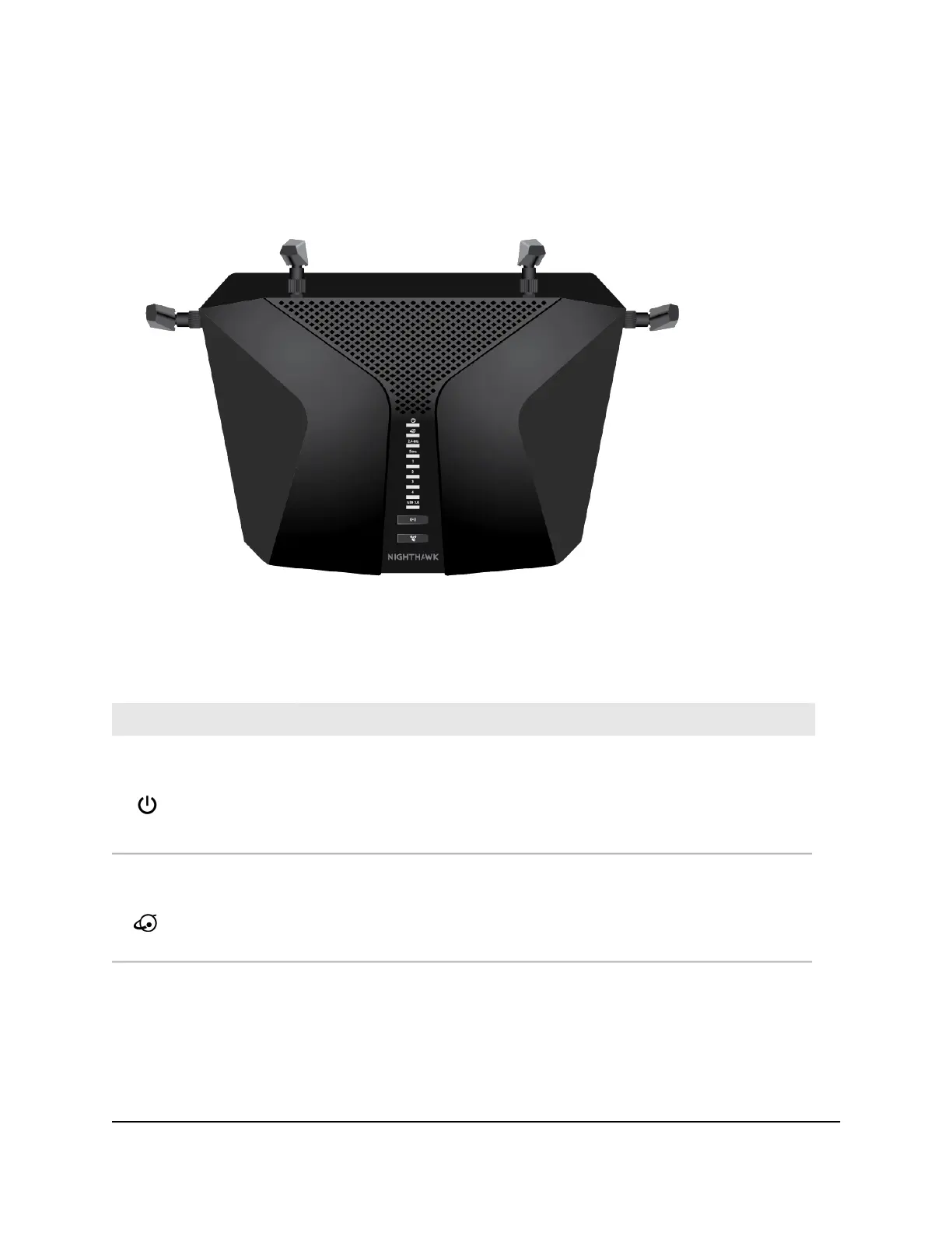 The status LEDs and two buttons are located on the top panel of the router.