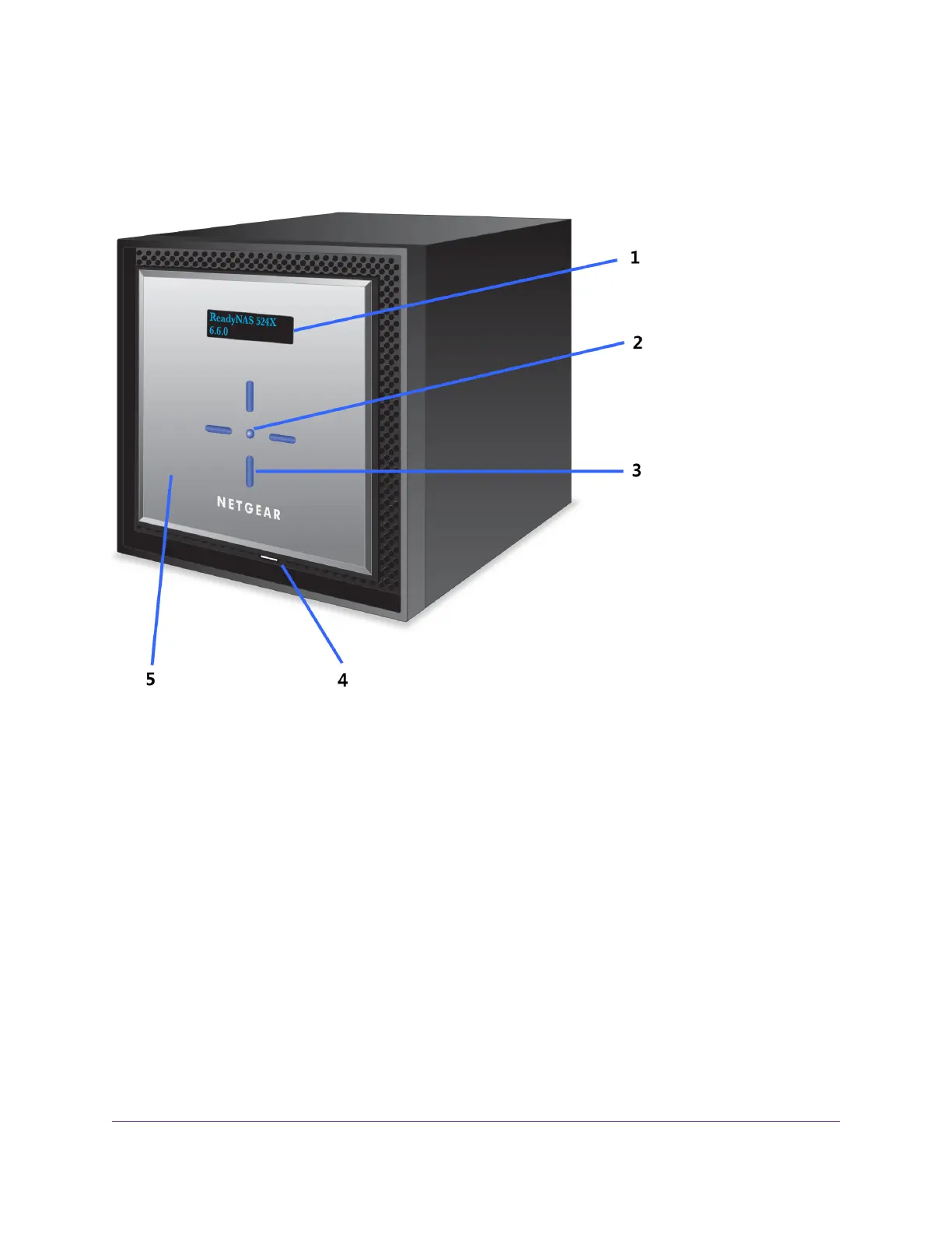 The following figure shows the front and side panels of the ReadyNAS 524X.