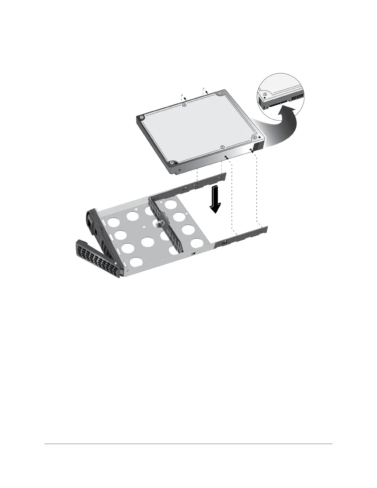 Make sure that the HDD mounting holes are aligned with the bracket's mounting posts and that the HDD