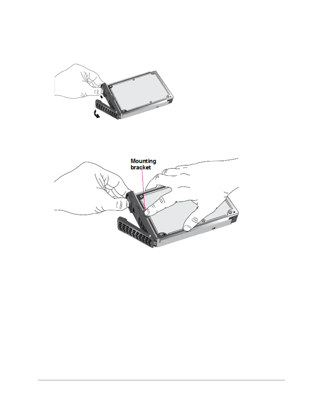 5. While holding the disk tray release latch, pull out the mounting bracket and slide the bracket down the