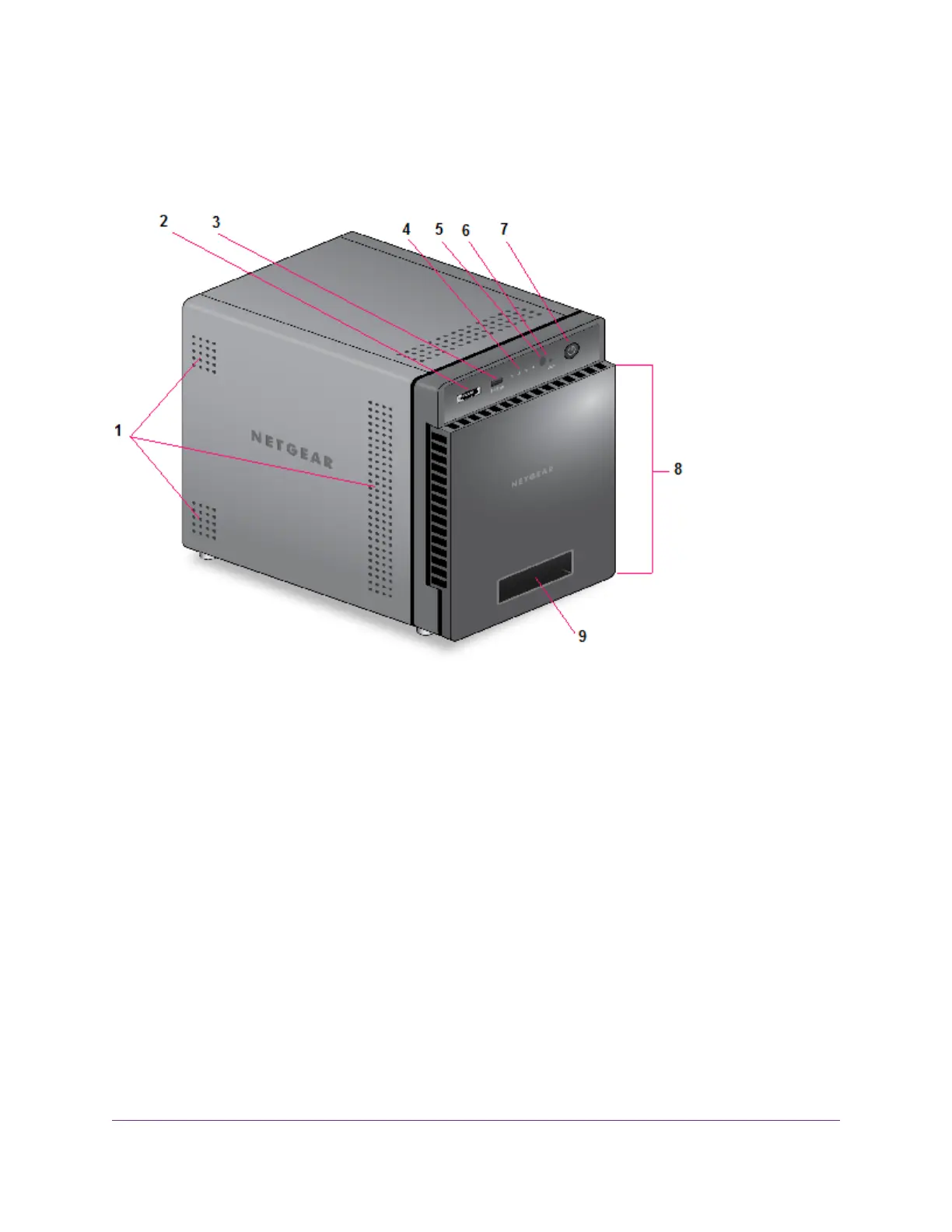 The following figure shows the front and side panels of the ReadyNAS 314.