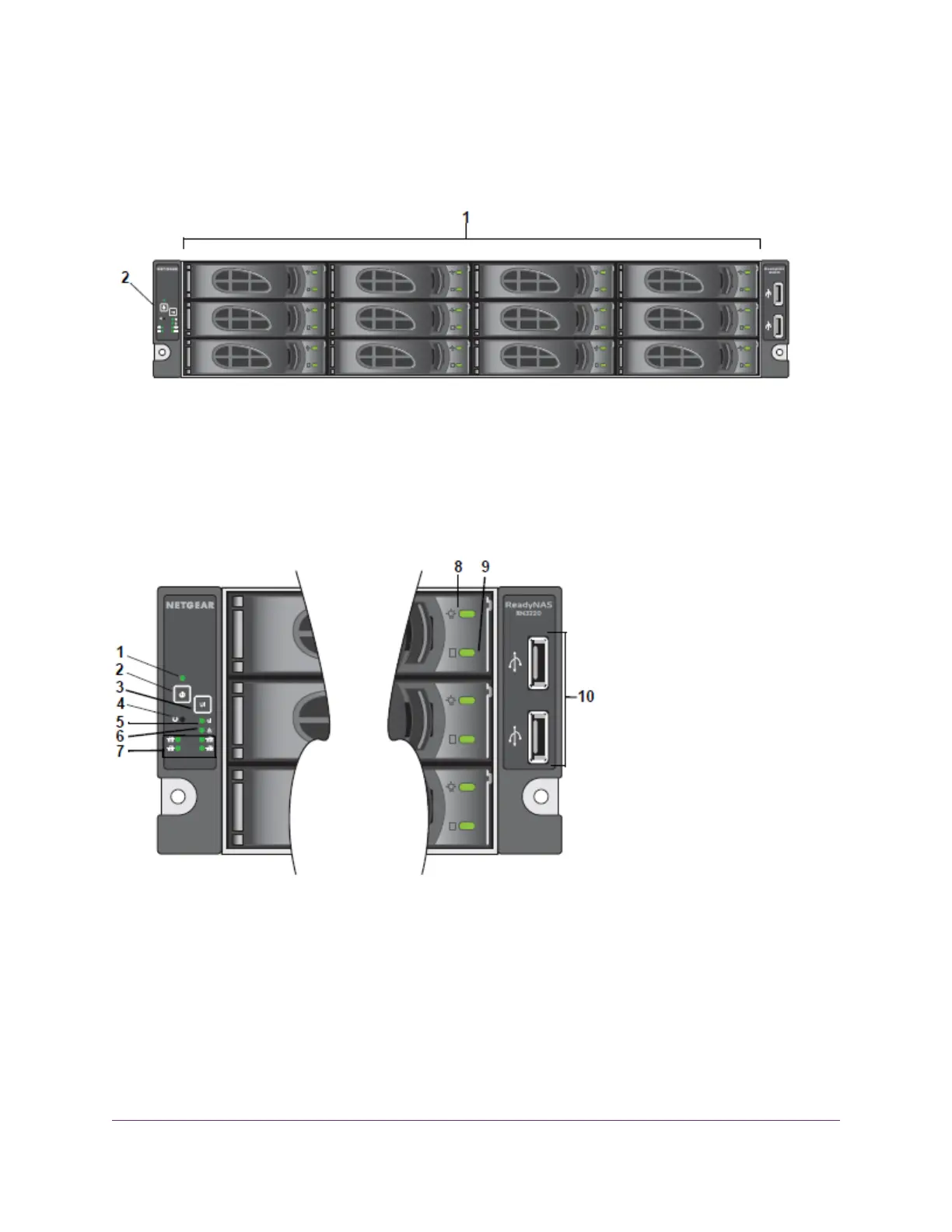 The following figure shows the front panel of the ReadyNAS 3220 and 4220 storage systems.
