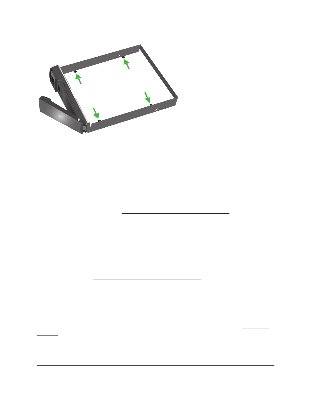 Align the disk screw holes with the drive tray pins and adjust until the pins are seated
