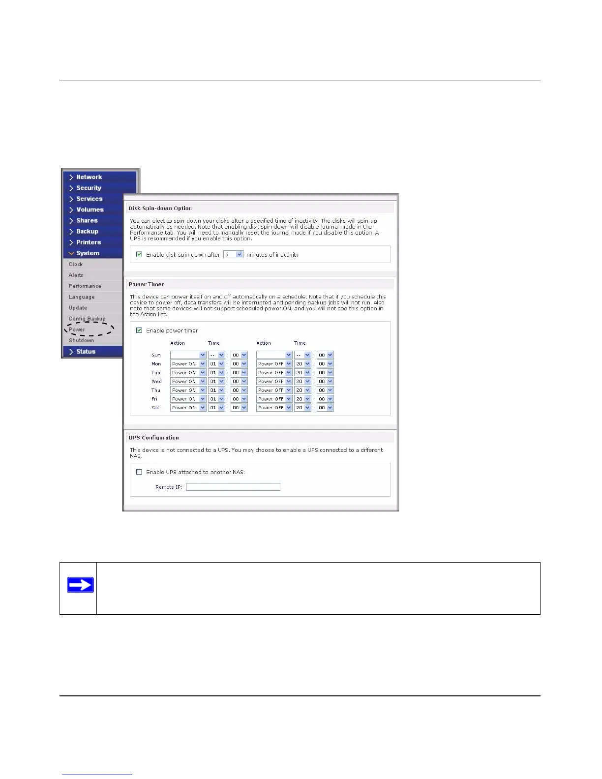 Note: Enabling disk spin-down disables journal mode. Once enabled, if you decide to