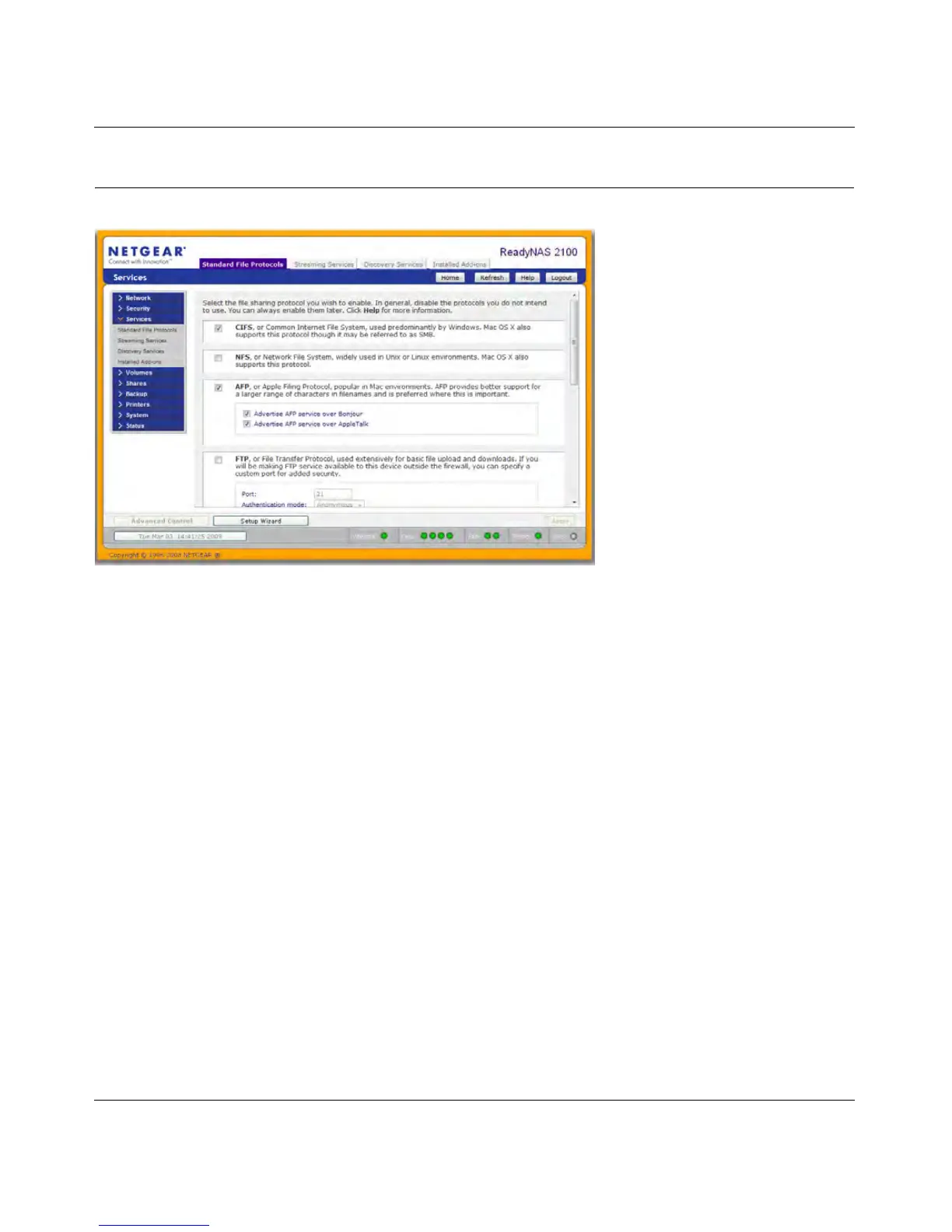 the type of clients you wish to allow access to the ReadyNAS 2100. Three types of services are