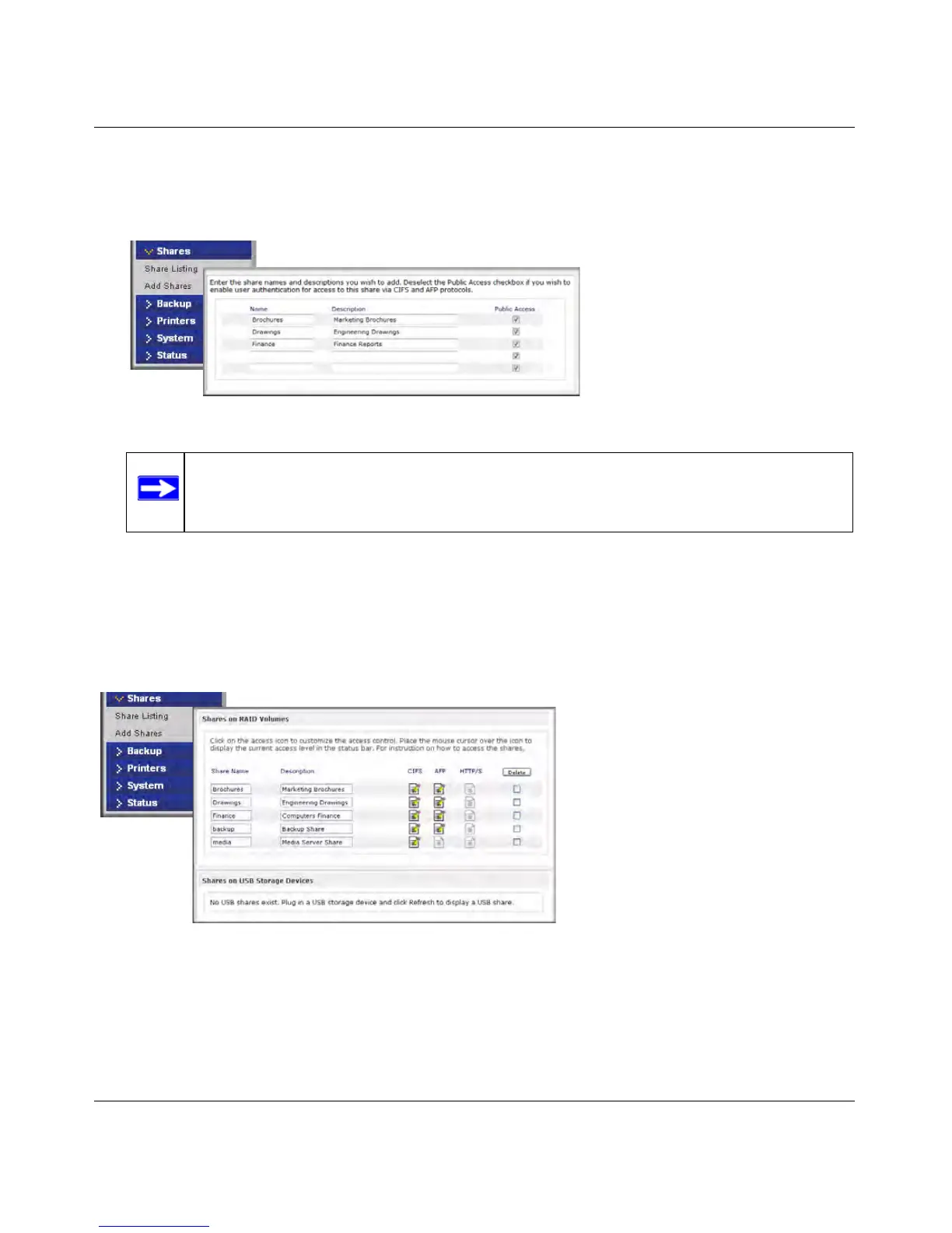 Once you finish adding the shares, refer to Appendix A, “Share Access from MAC and Linux