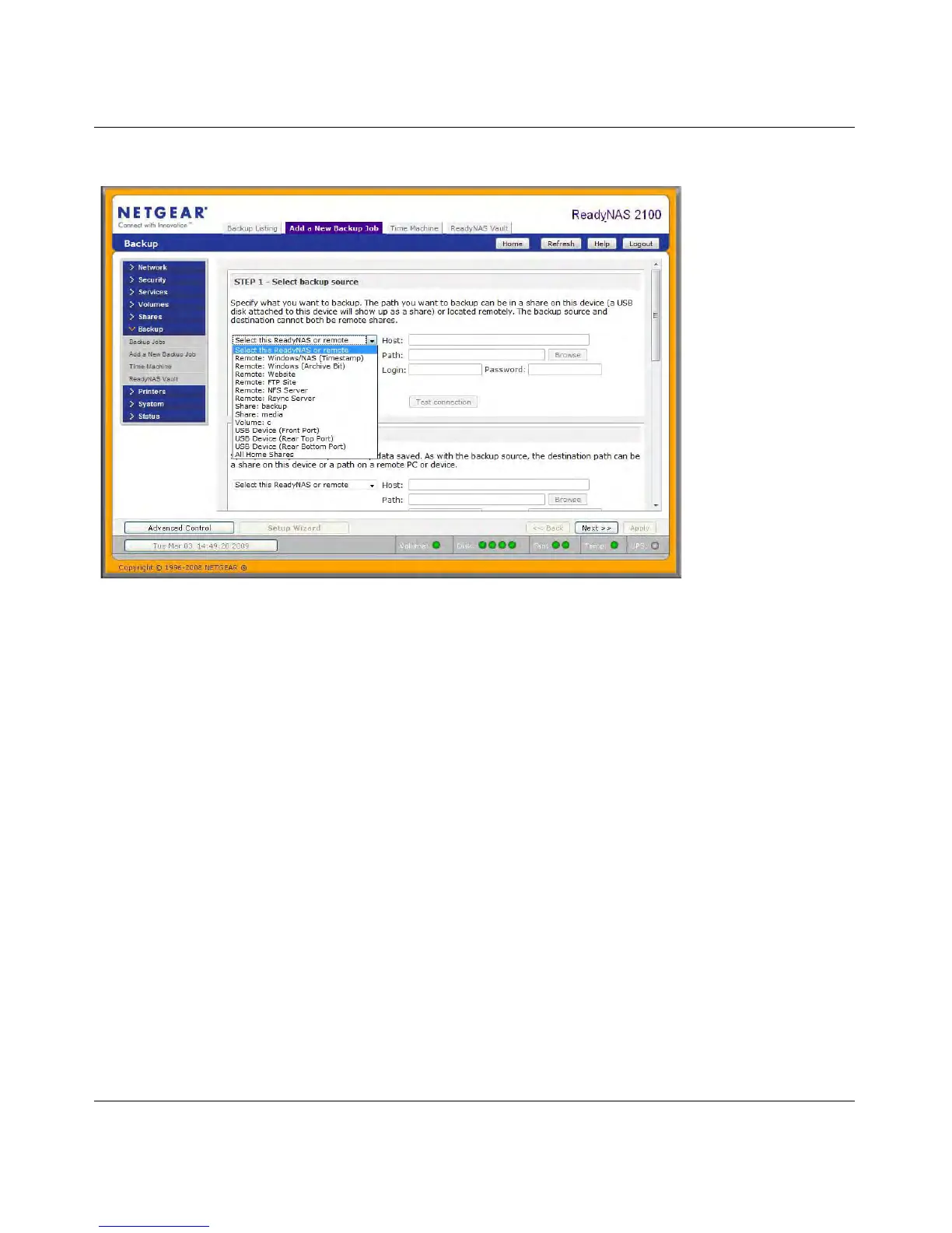 A USB device appears as a share, so if you want to back up a USB device, select a share name. If