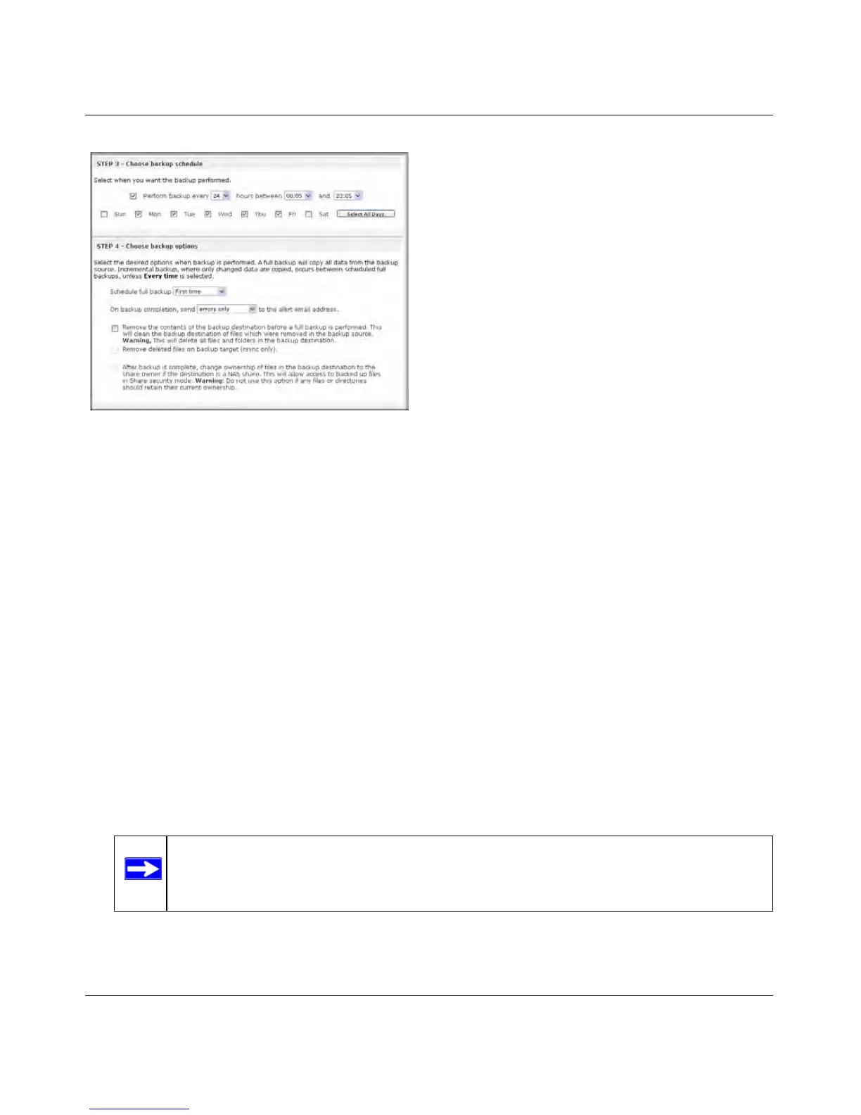 1. Schedule a full backup. Select when you want full backups to be performed. You can elect to
