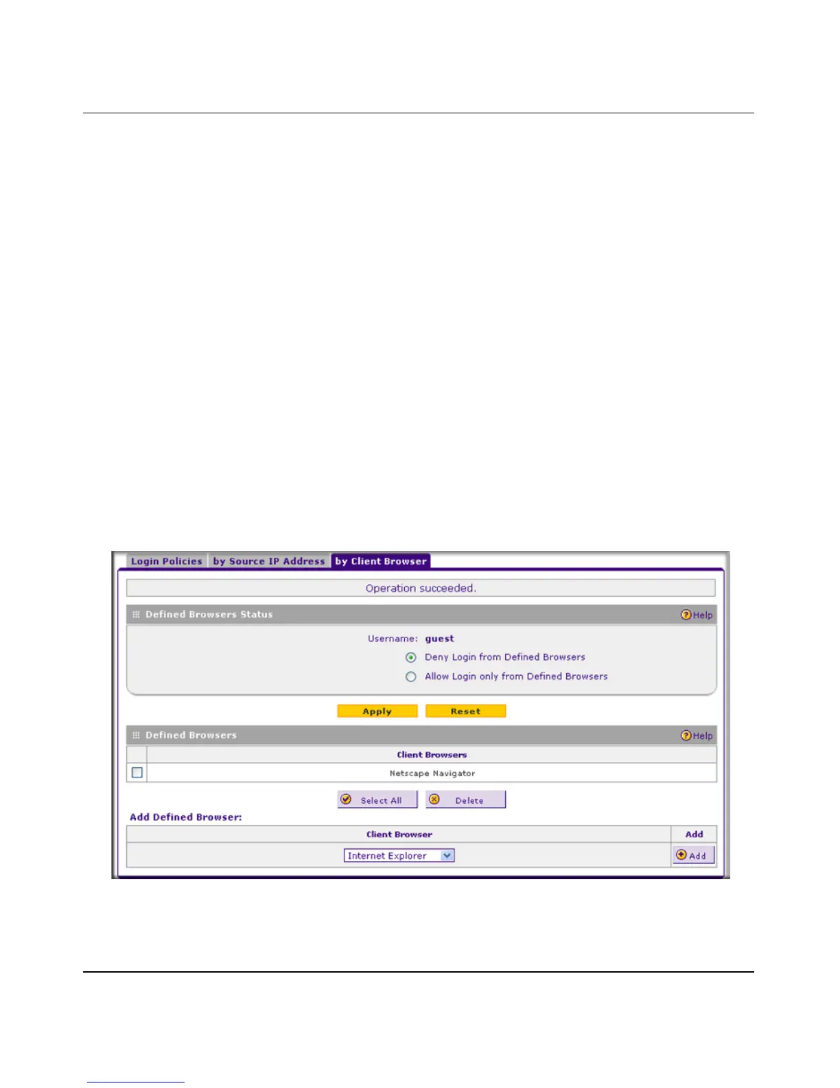 3. Click the by Client Browser submenu tab. The by Client Browser screen displays. Figure 7-9