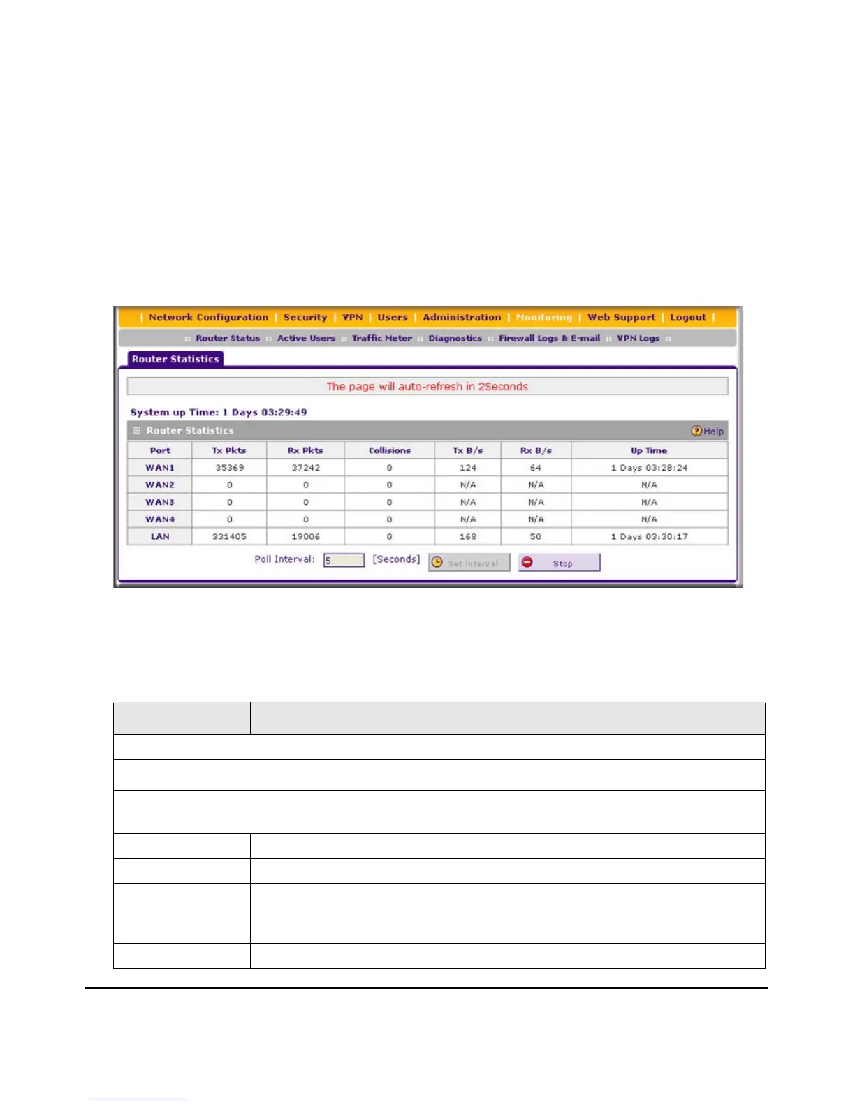Table 9-5. Router Statistics Screen Fields