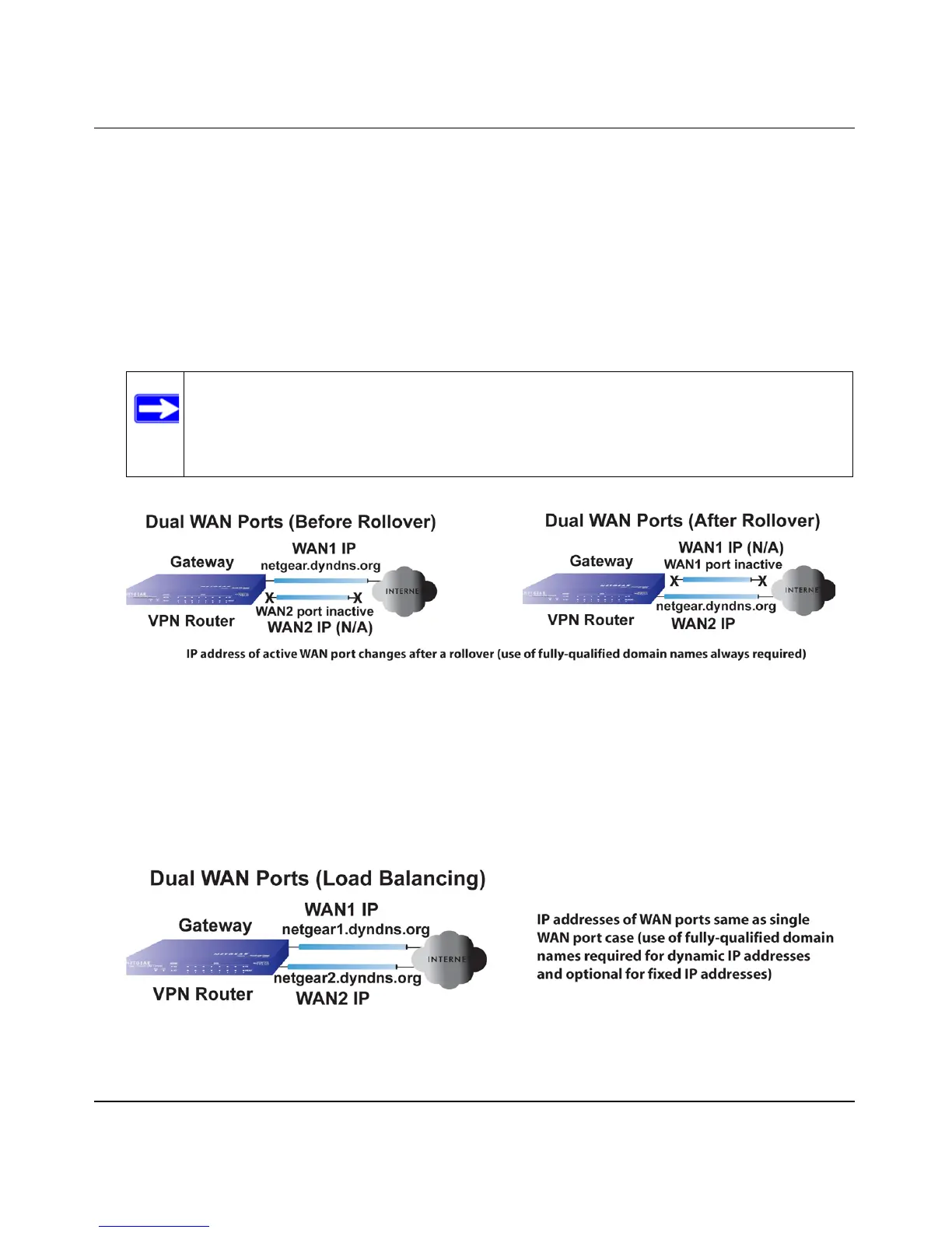 Note: When the VPN firewall’s WAN port rolls over, the VPN tunnel collapses and