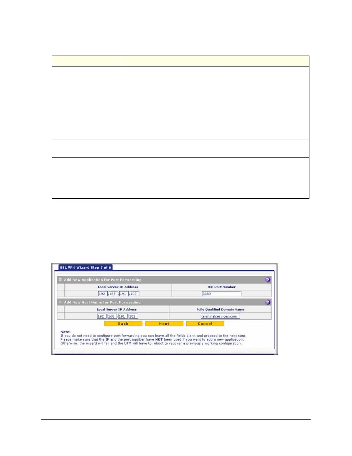 SSL VPN Wizard Step 5 of 6 (Port Forwarding)