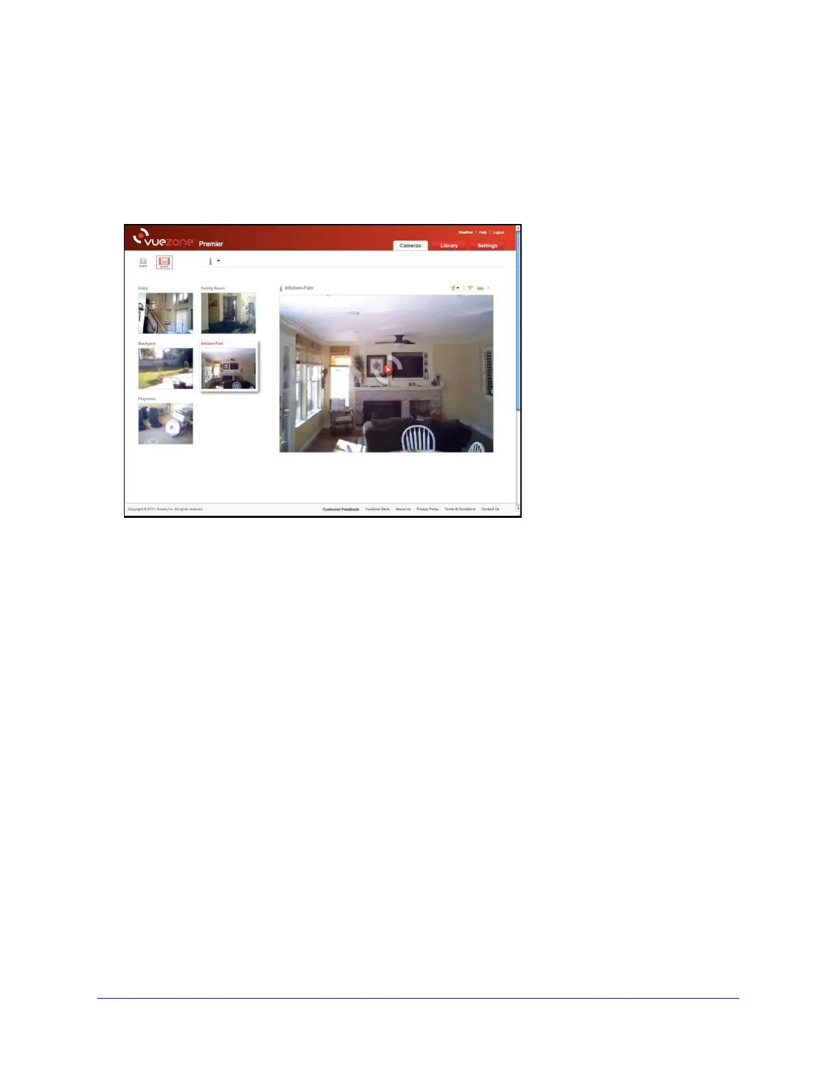 VueZone.com has three tabs: Cameras, Library, and Settings. This is where you control