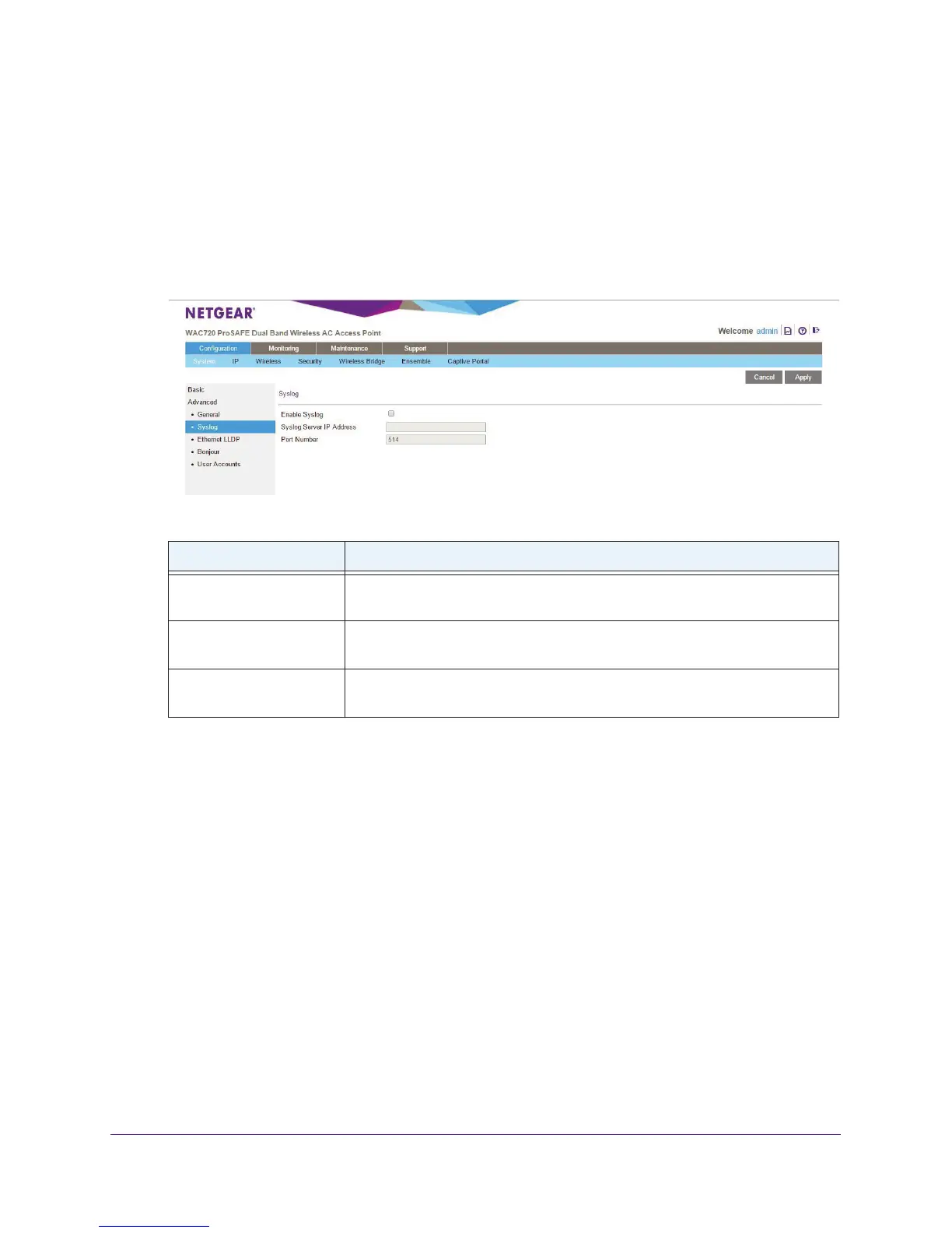 Enable Syslog Select the check box to enable the syslog option. By default, the syslog option