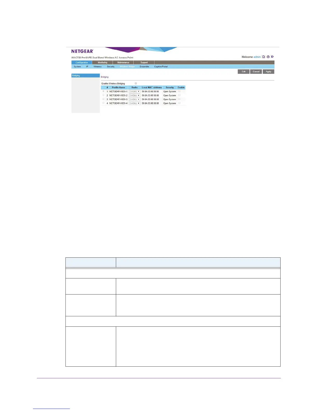 b. Select the Enable Wireless Bridging check box.