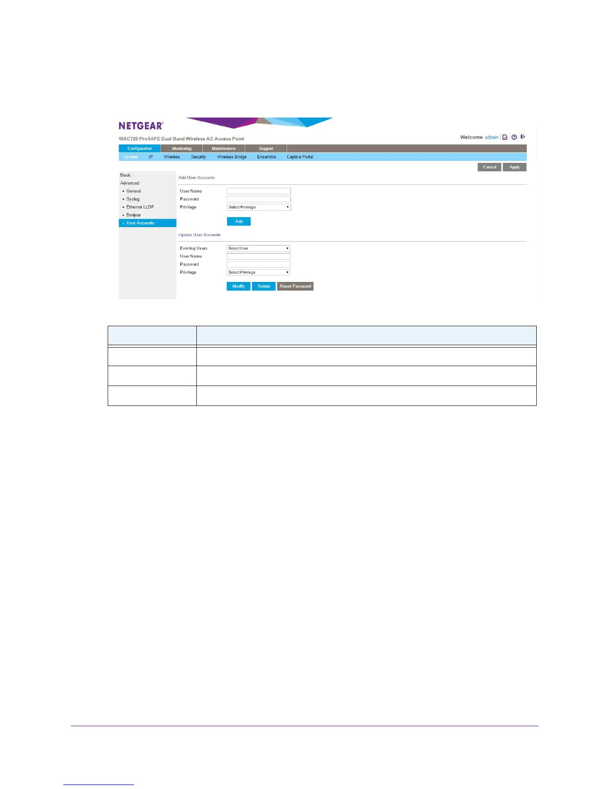 To change the privilege for a user account:
