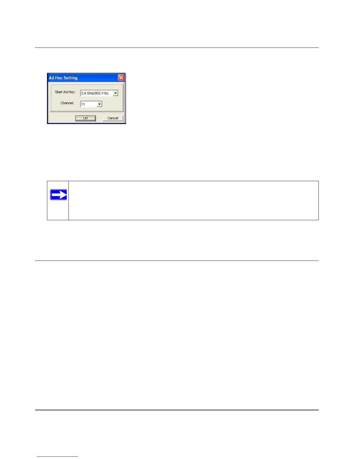 4. In the Start Ad Hoc field, choose the wireless standard (802.11b, or 802.11g) for your Ad Hoc