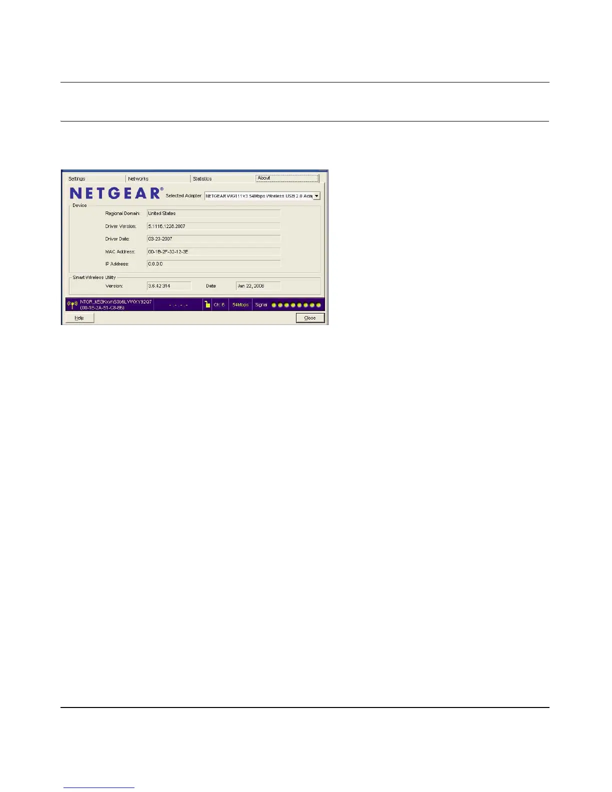 • Smart Wireless Utility: The version and date of the Smart Wizard.
