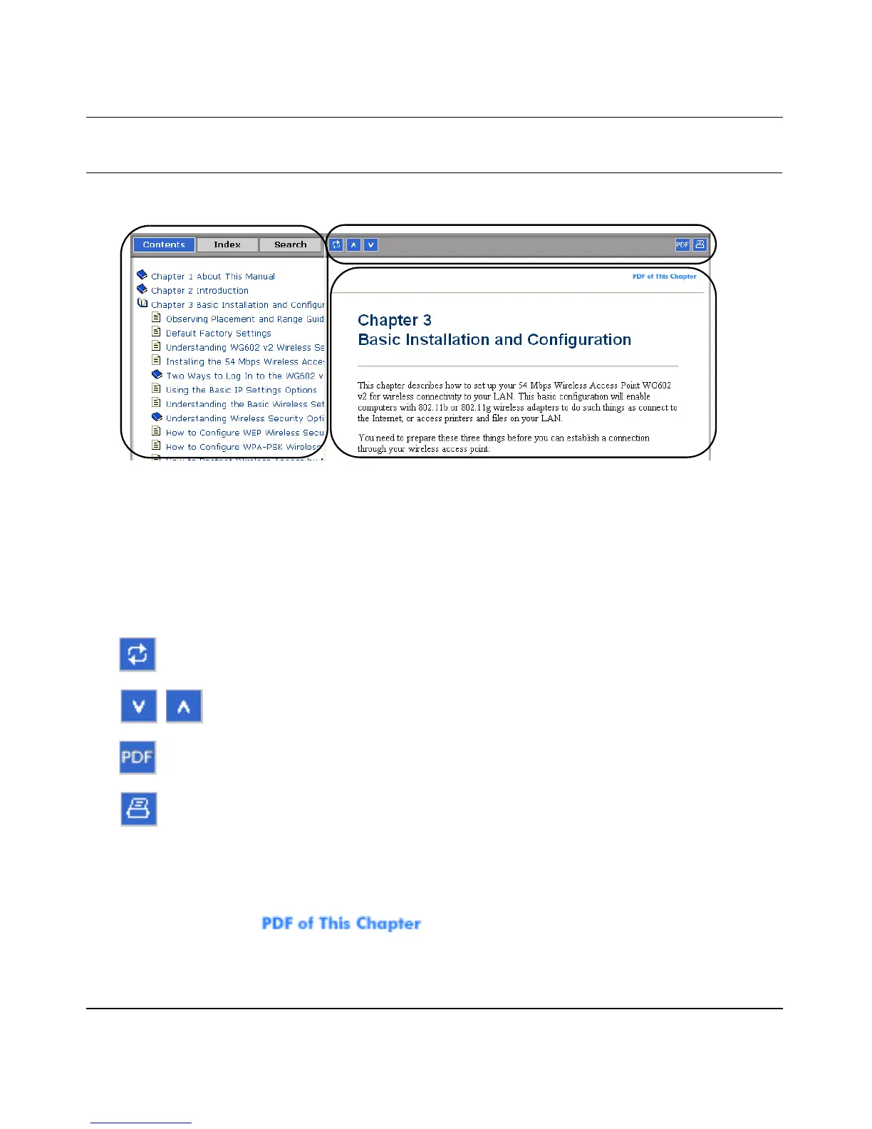 3. Right pane. Use the right pane to view the contents of the manual. Also, each page of the
