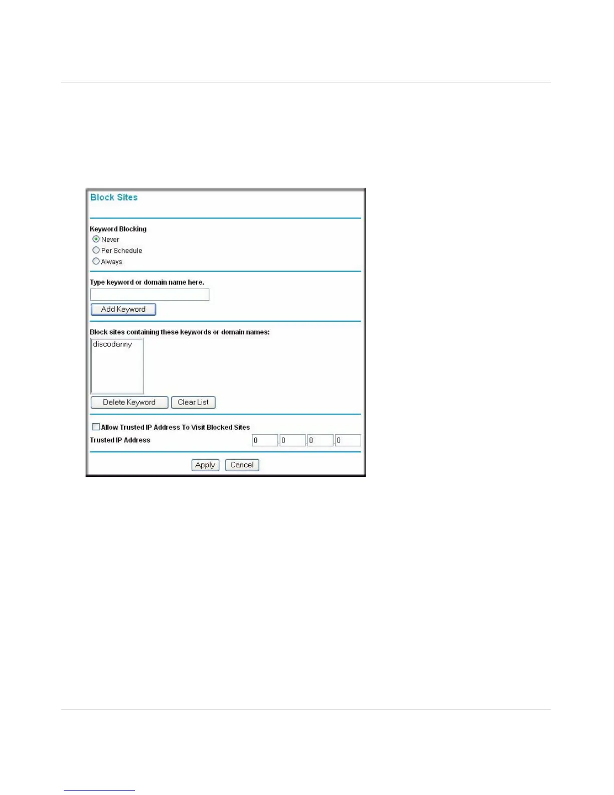 keyword or domain name then appears the Block sites containing these keywords or domain
