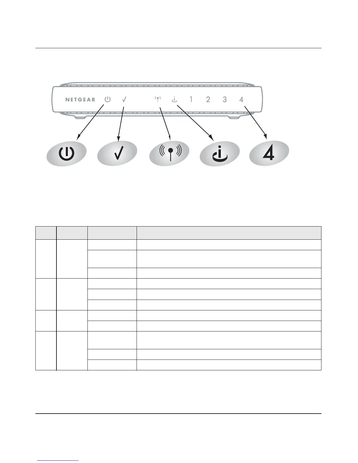 3 Wireless On Indicates that the wireless router radio is enabled.