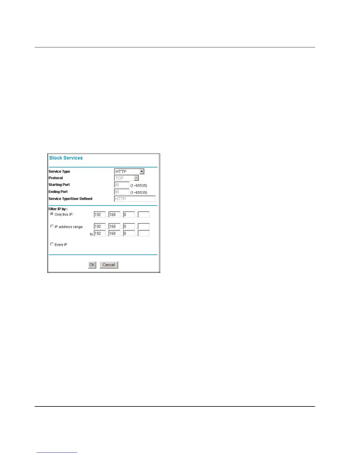 To specify a service for blocking, click Add. The Add Services menu will appear, as shown below: