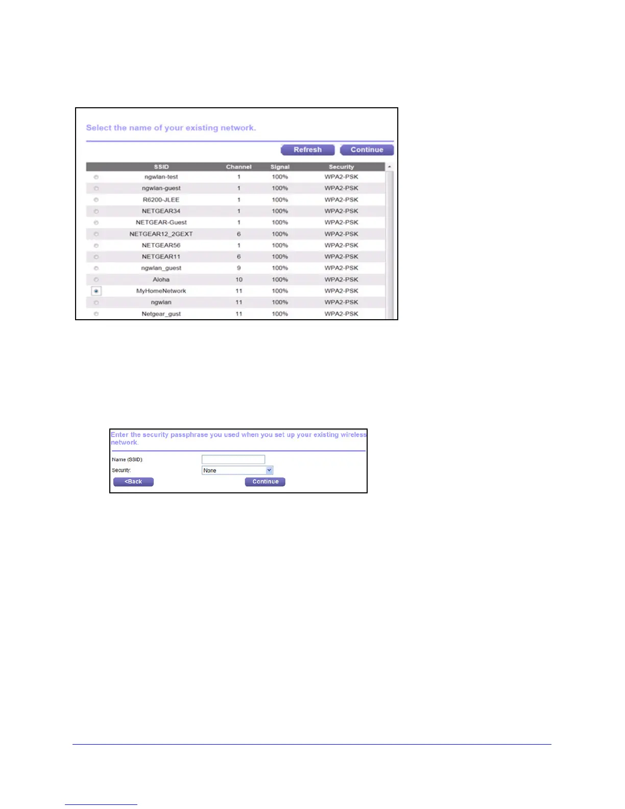 1. Select Setup > Connect to an Existing Network. The booster scans for wireless