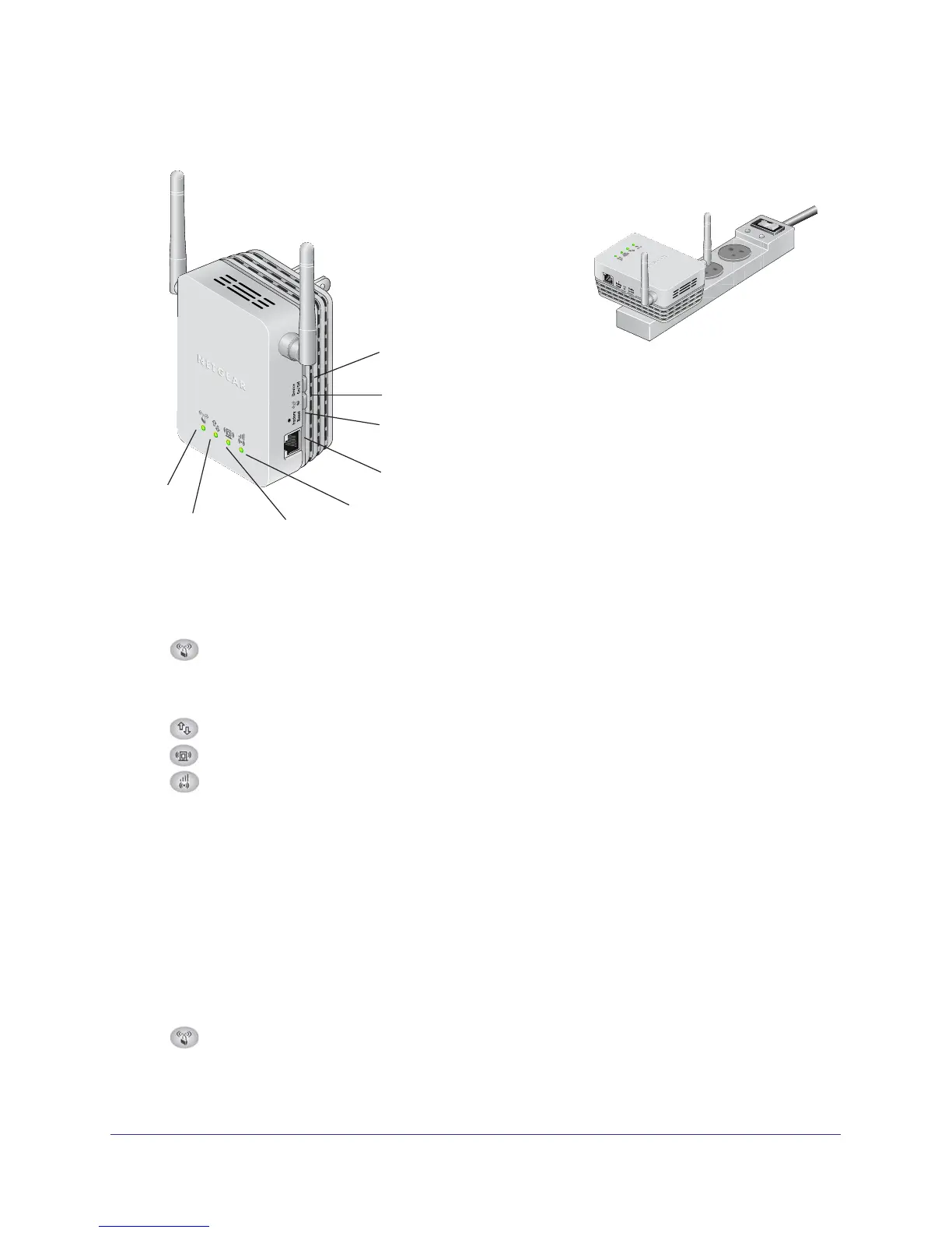 WPS button. Press the WPS button to wirelessly connect the Extender to your