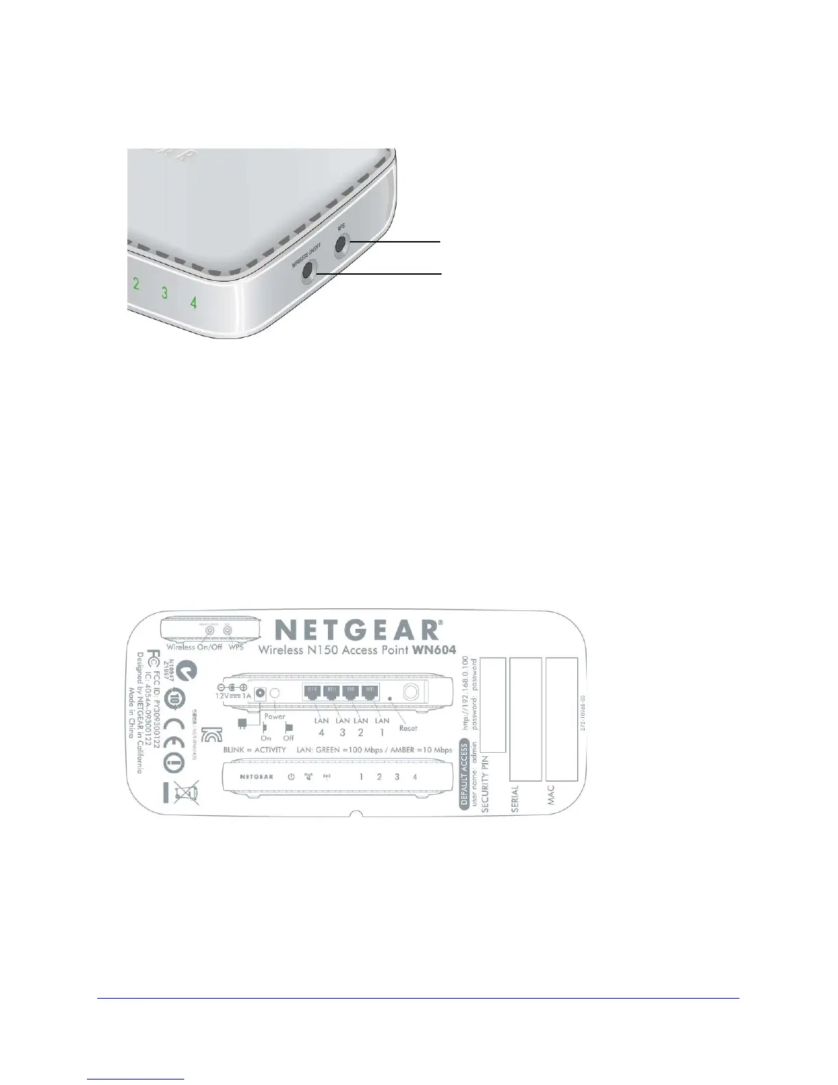 security PIN, and the default IP address for logging in to the access point.