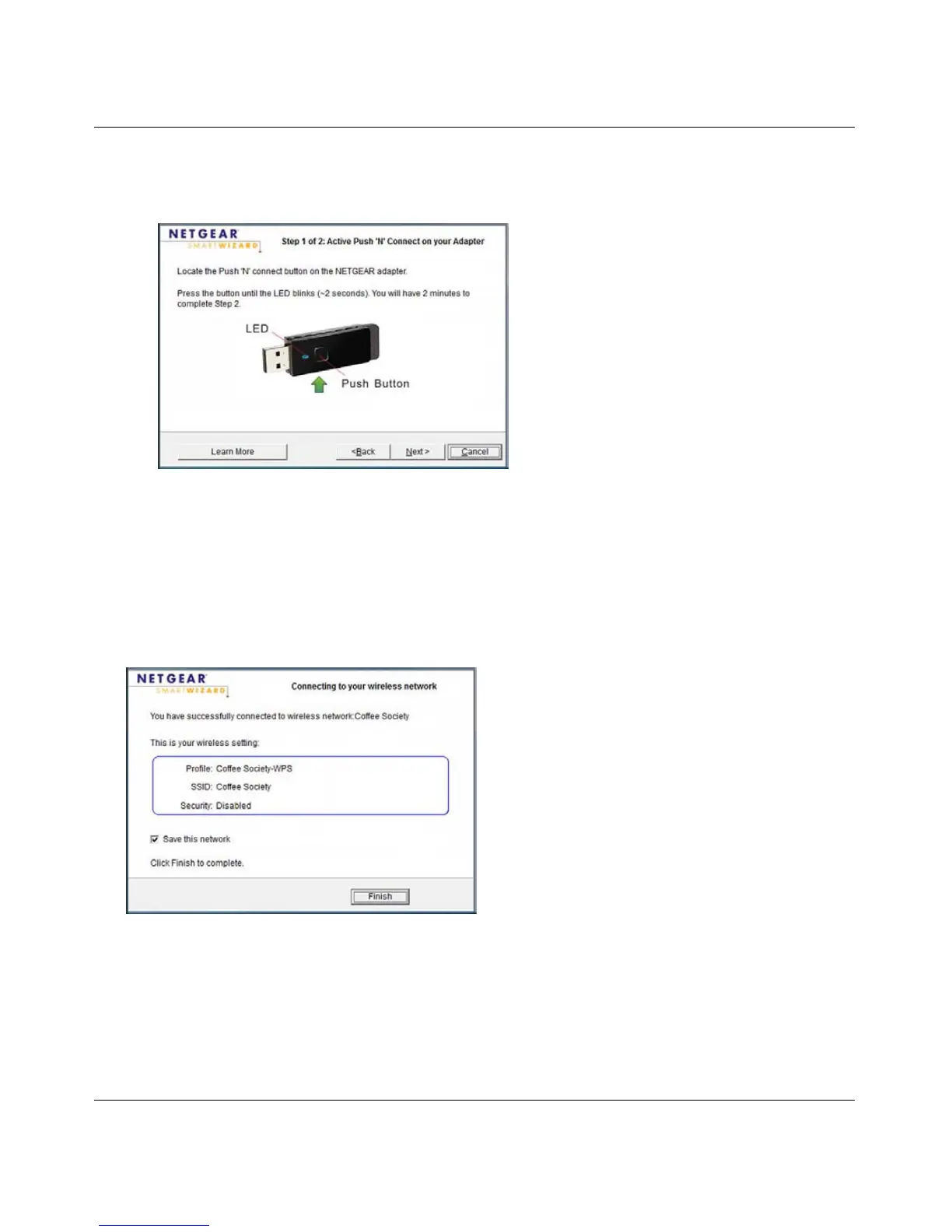 The LED flashes. Click Next. Follow the prompts to push the WPS button on your router