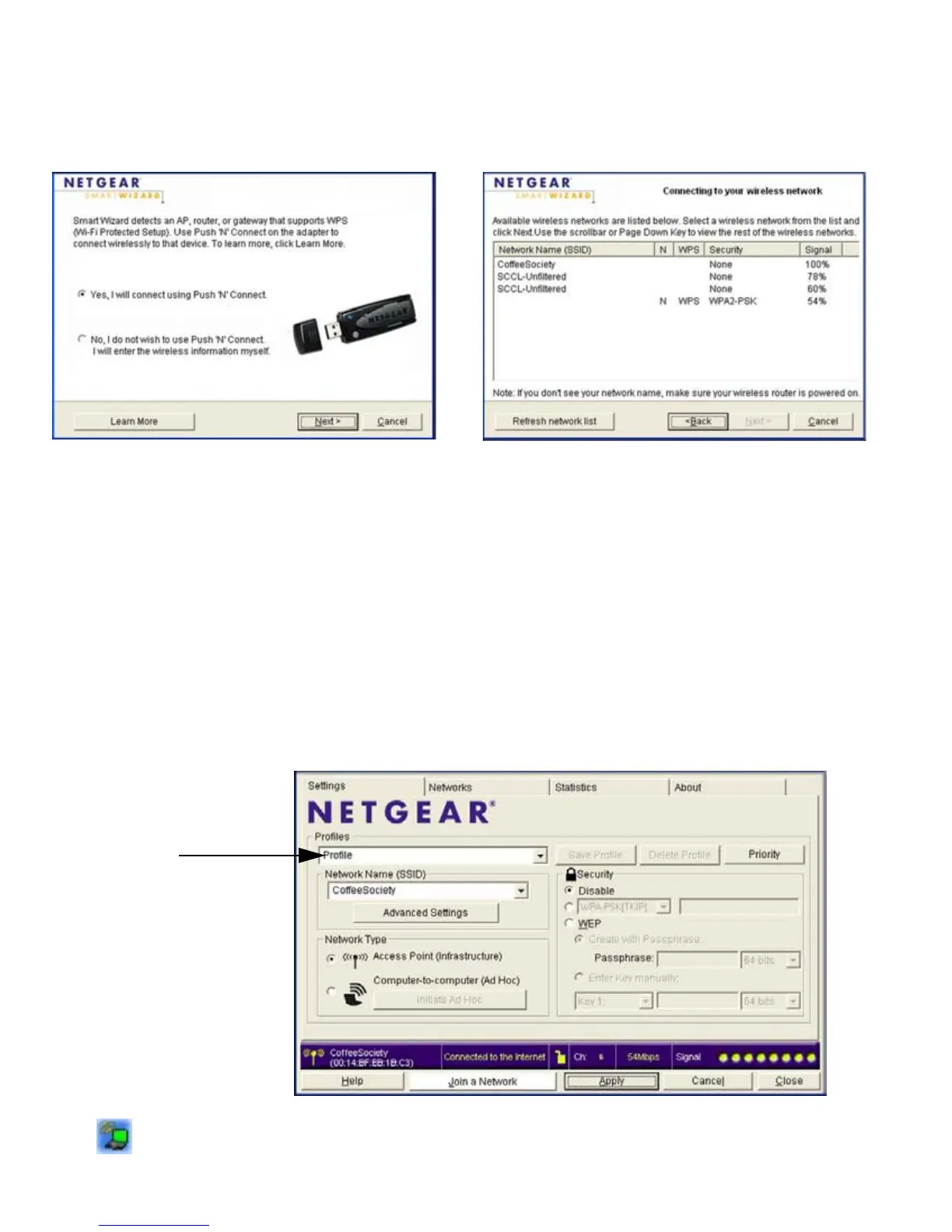 • No WPS: Select your wireless network from the list and click Next. To connect
