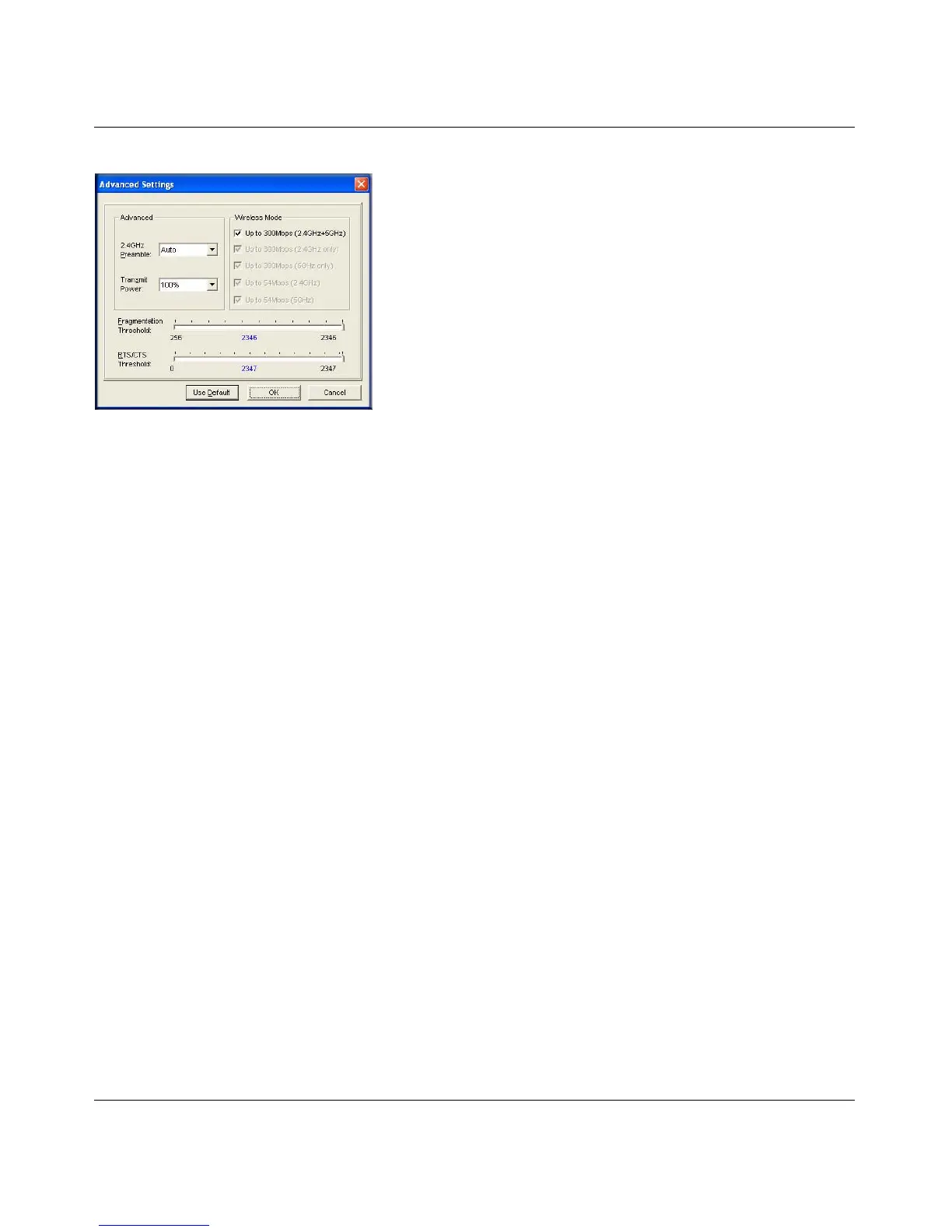 • Fragmentation Threshold. This is the maximum packet size used for fragmentation. Packets