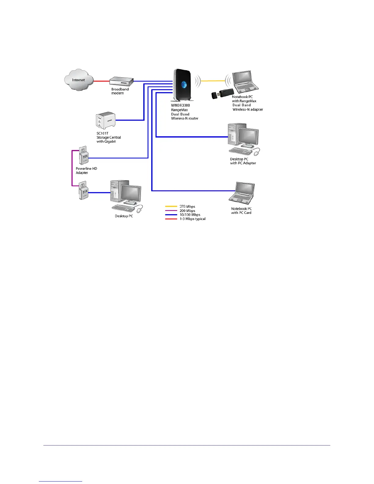 lower-speed bottlenecks. The following illustration shows a home network that includes many